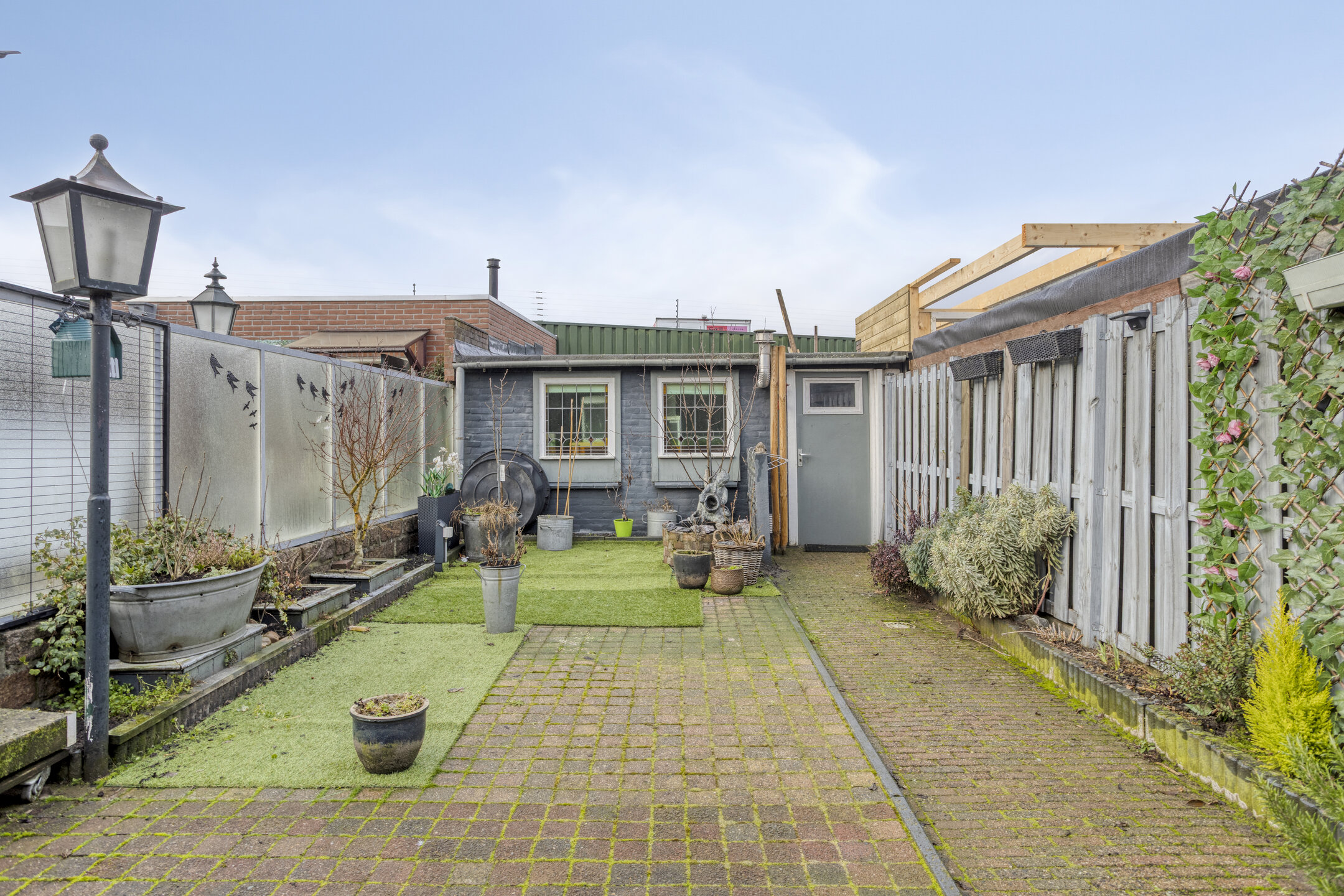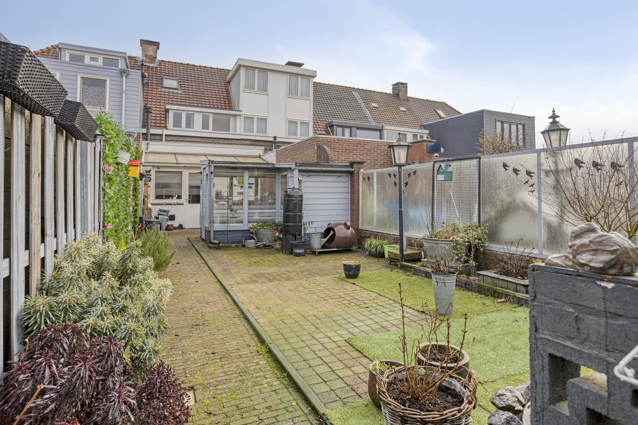 De woning beschikt over een keurig aangelegde voortuin en een verrassend diepe, vrij gelegen achtertuin van circa 14 meter. De tuin is verzorgd aangelegd met sierbestrating, borders, meerdere terrassen en een overkapping direct aan de woning – een heerlijke plek om te ontspannen.