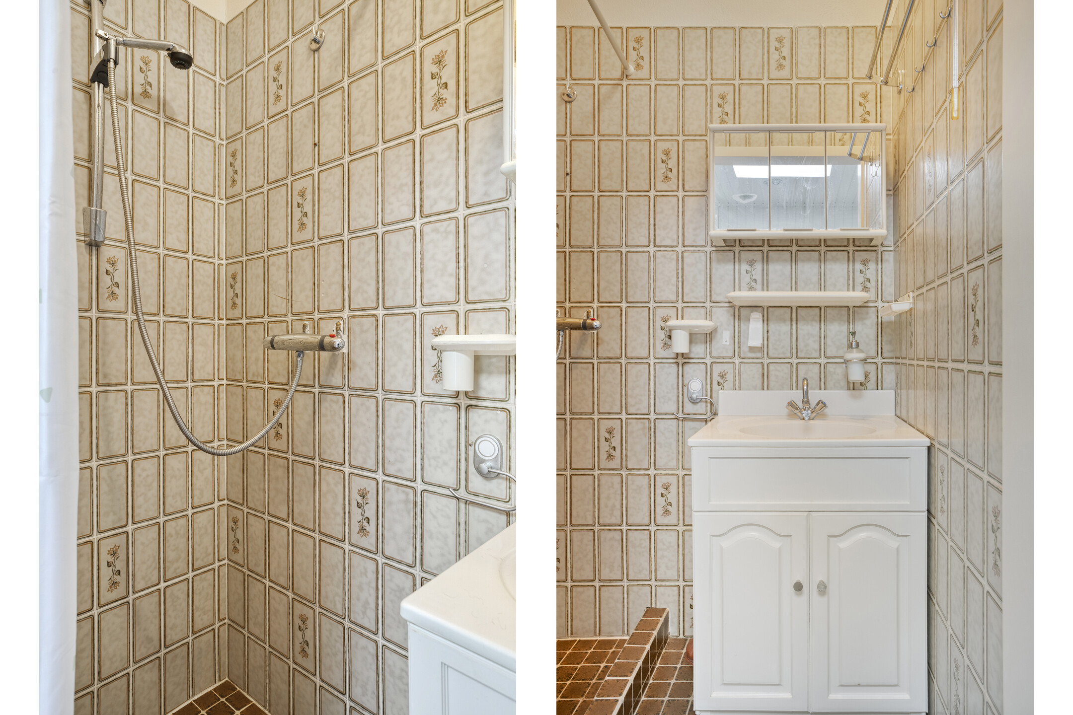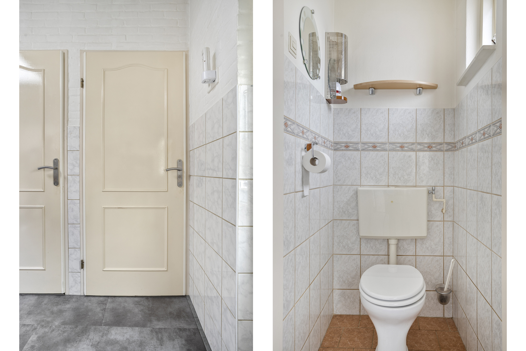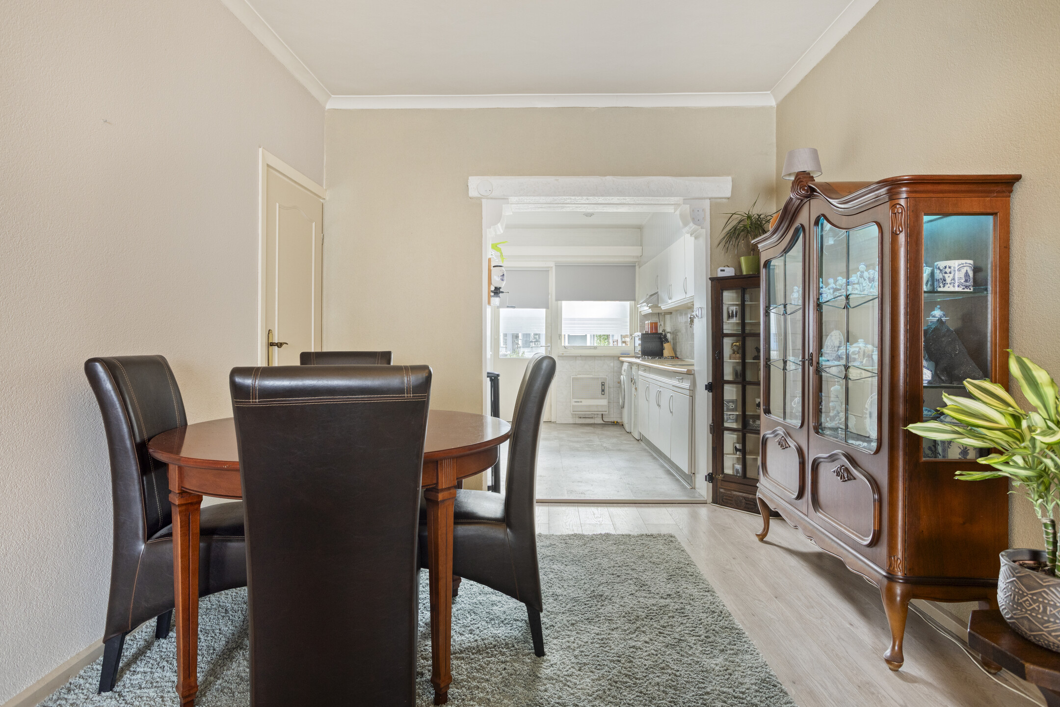 De uitgebouwde keuken vormt een fijne leefruimte met een lichtkoepel en loopdeur naar de tuin. De keuken is netjes uitgevoerd met een gaskookplaat, afzuigkap en ruimte voor losse apparatuur. Hier bevindt zich tevens de warmwatergeiser (Vaillant). Aansluitend vind je de separate toiletruimte, een compacte badkamer met douche en wastafel en een handige bergkast.