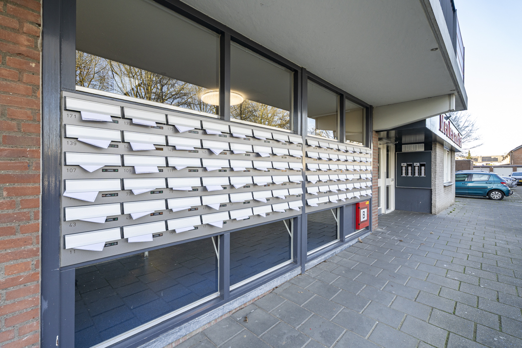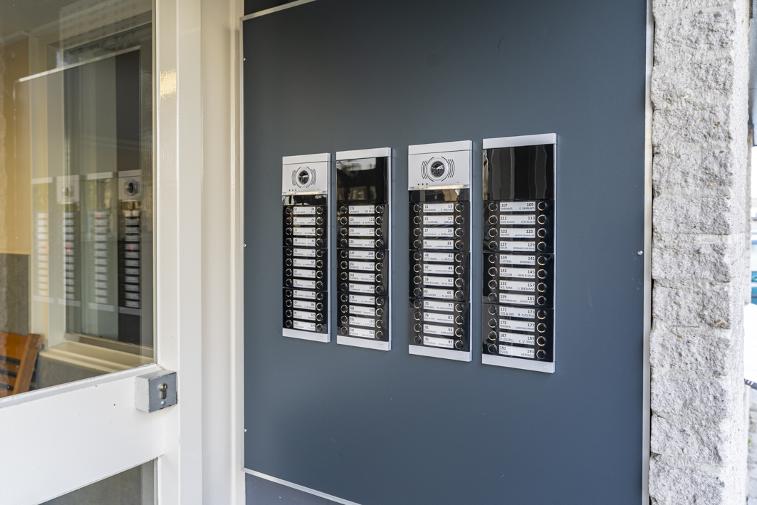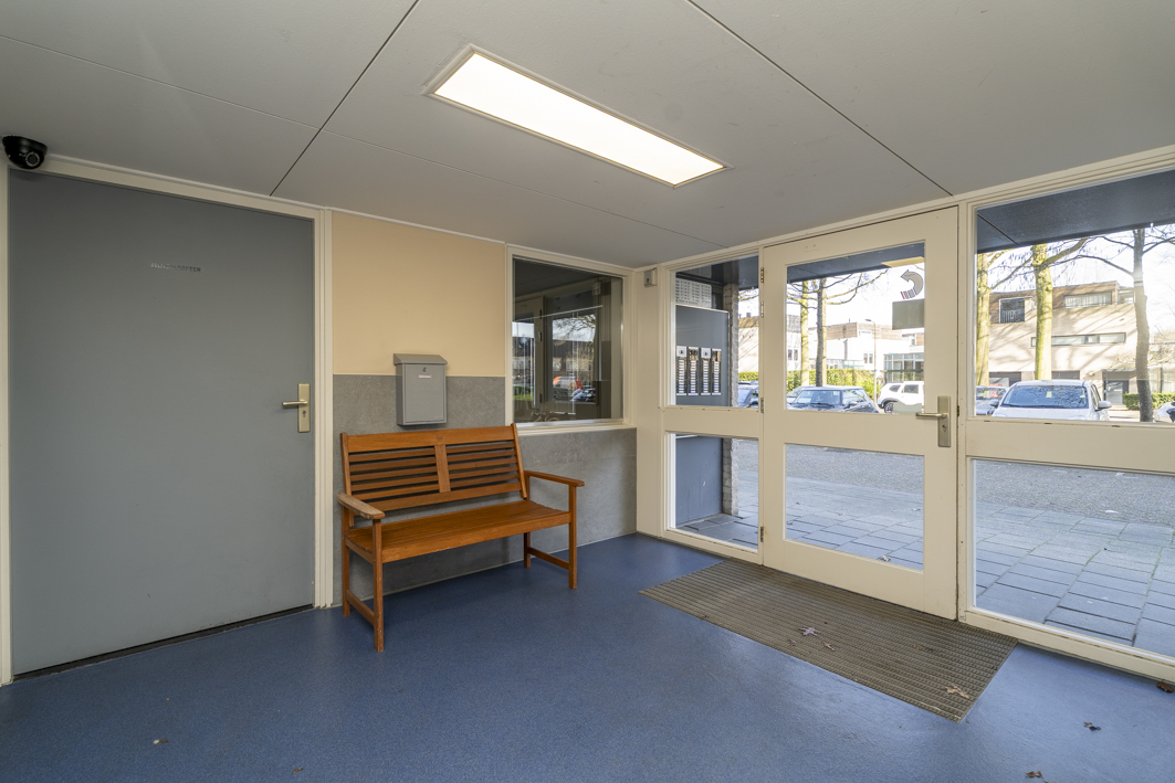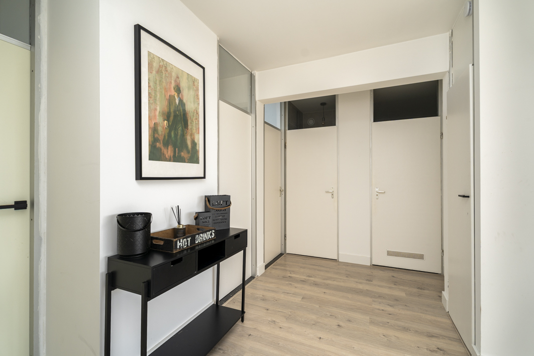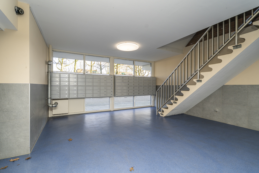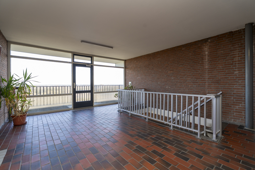 Via de centrale entree van het complex bereik je de bergingen, het trappenhuis en uiteraard de lift die je comfortabel naar de twaalfde verdieping brengt. Vanaf de galerij stap je zo de voordeur van dit verzorgde appartement binnen.
