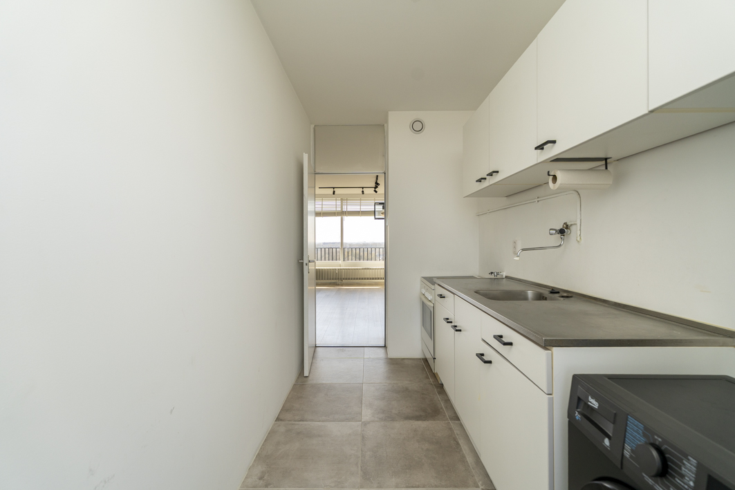 Binnen beschik je over een lichte woonkamer, drie volwaardige slaapkamers en een fijn balkon met uitzicht, een combinatie die je niet vaak tegenkomt in dit type appartement. Verder is er een aansluiting voor was- en droogapparatuur aanwezig en is er voldoende ruimte voor een koel-/vriescombinatie.