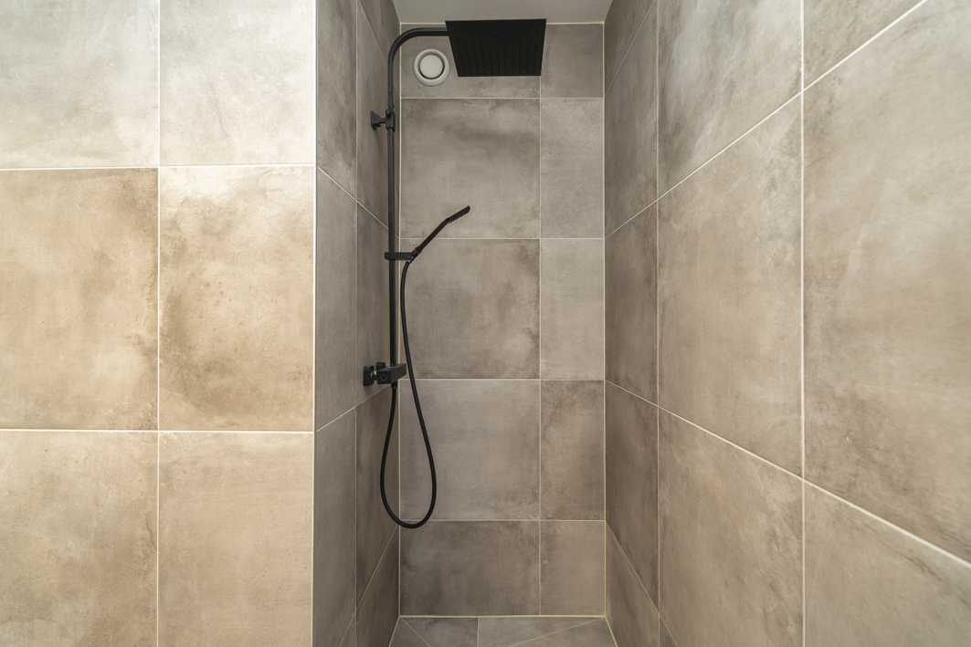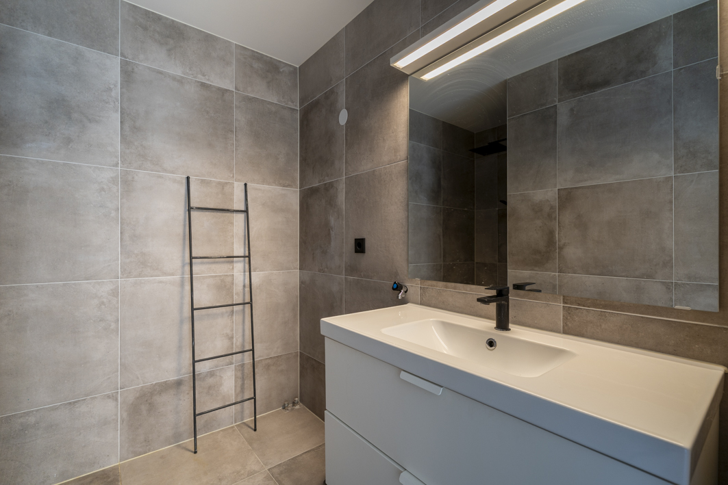 De moderne badkamer (2020) is strak afgewerkt en voorzien van een inloopdouche, een wastafel met meubel en de aansluitingen voor wasapparatuur. Ook het separate toilet is in 2020 vernieuwd.