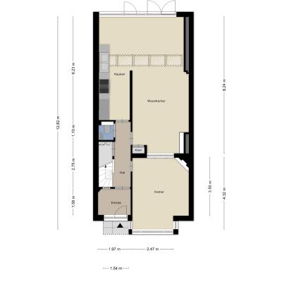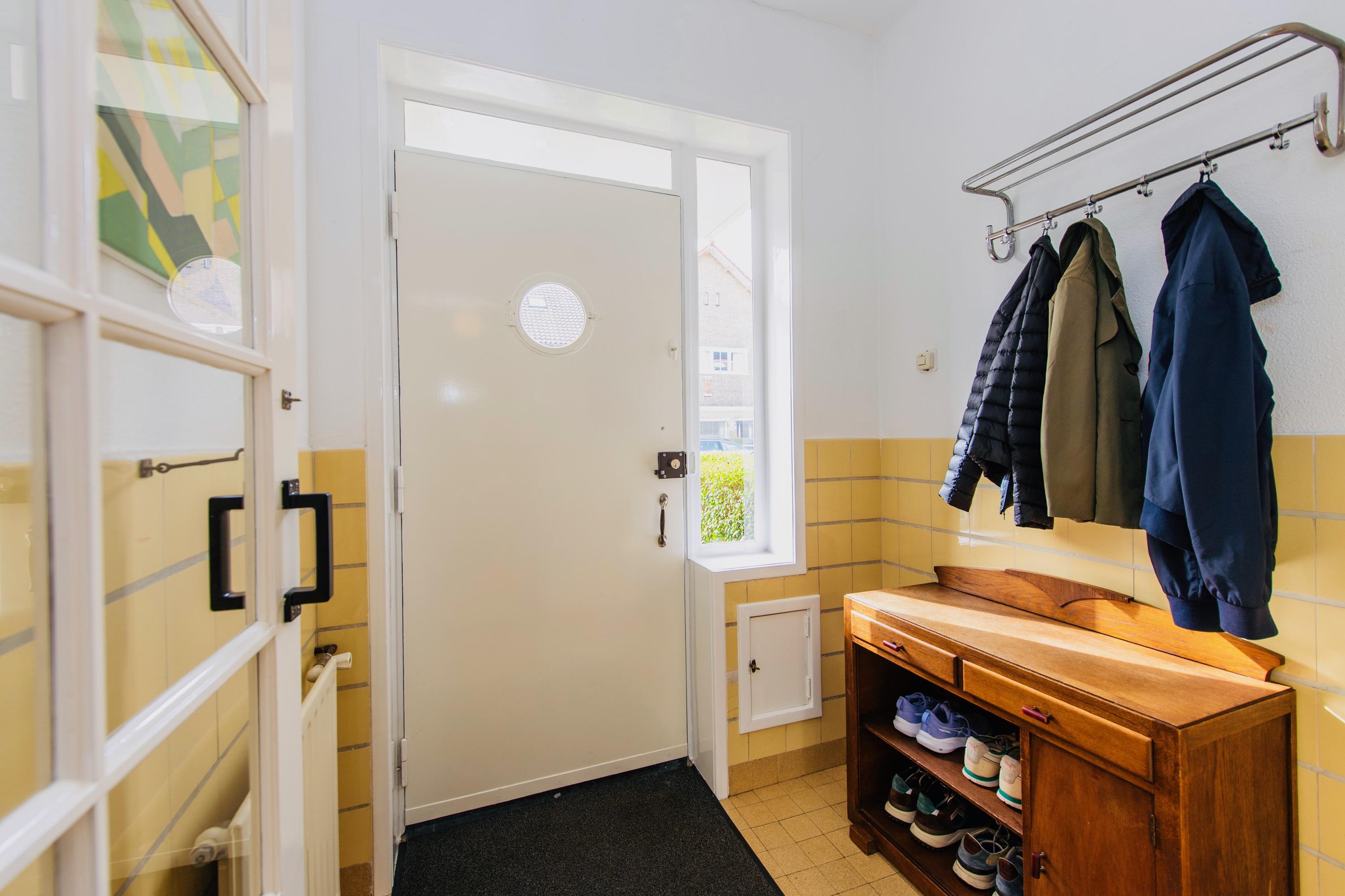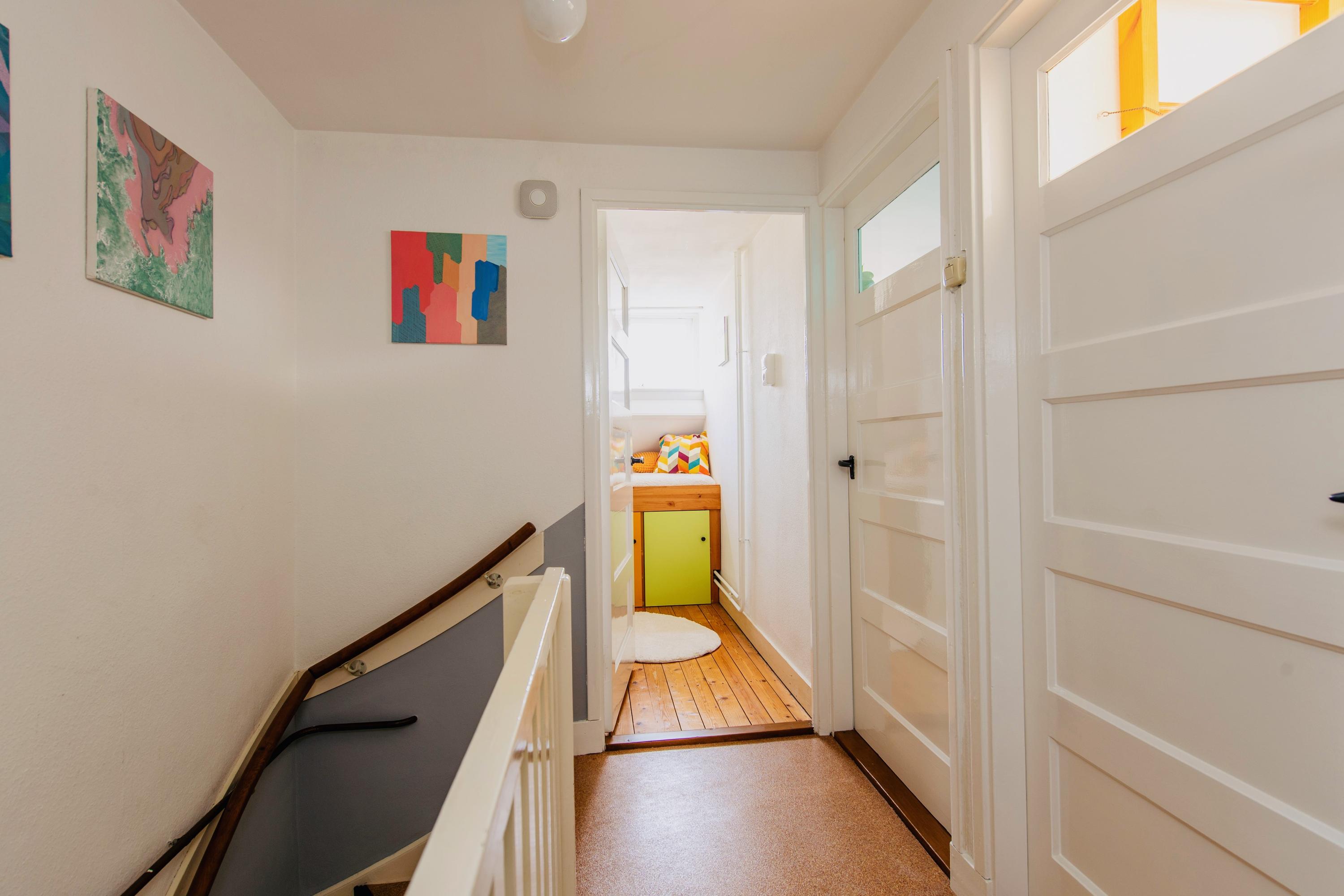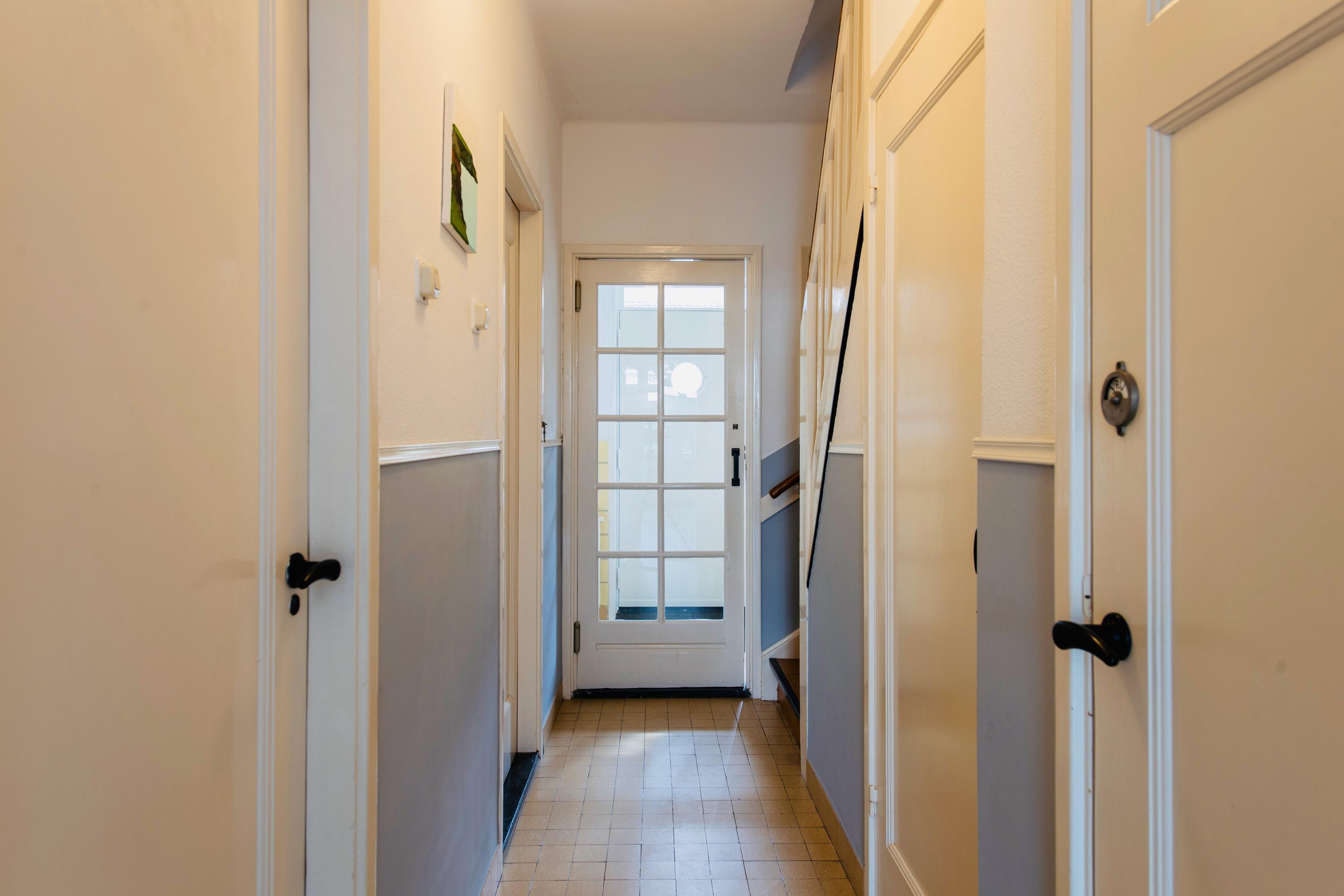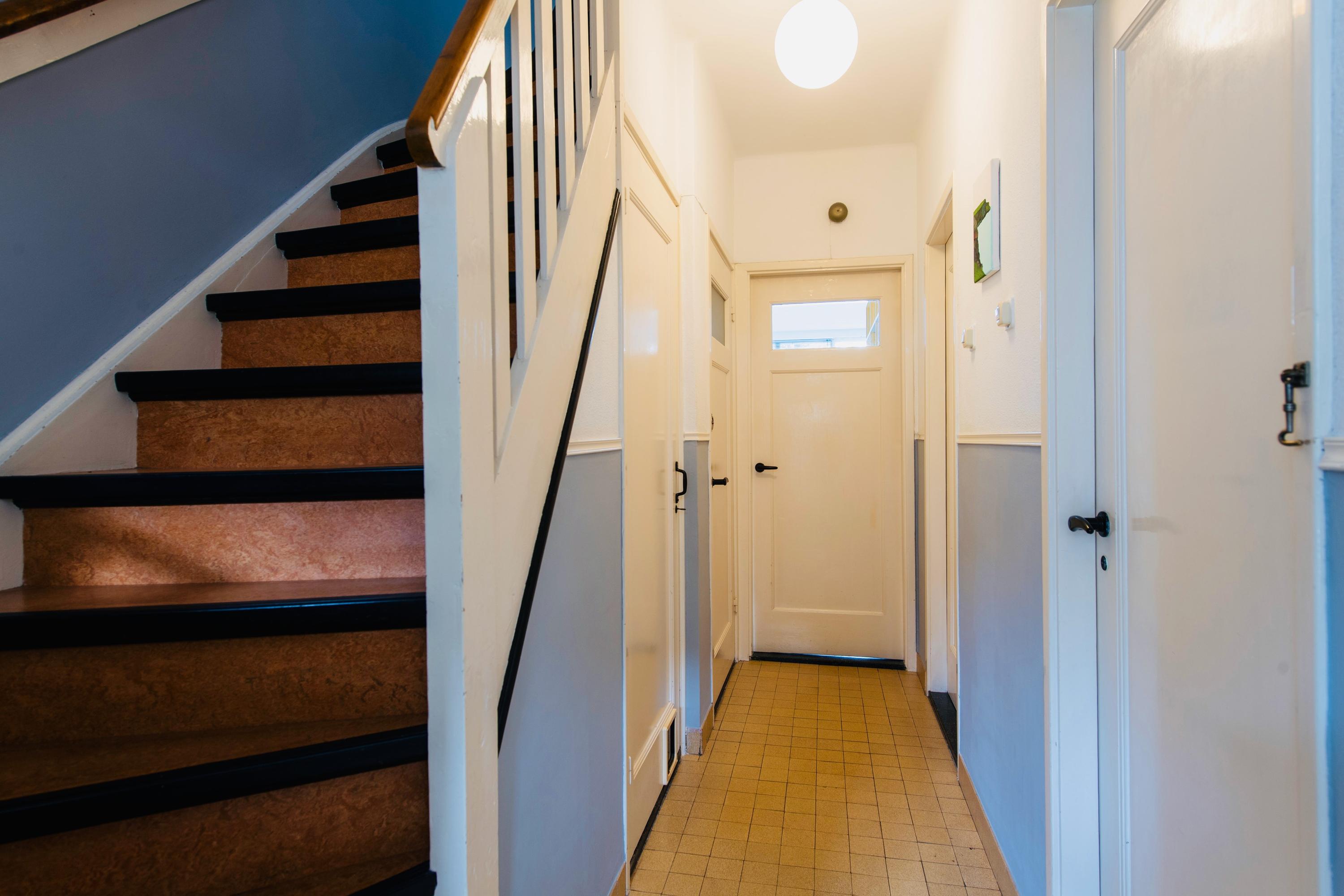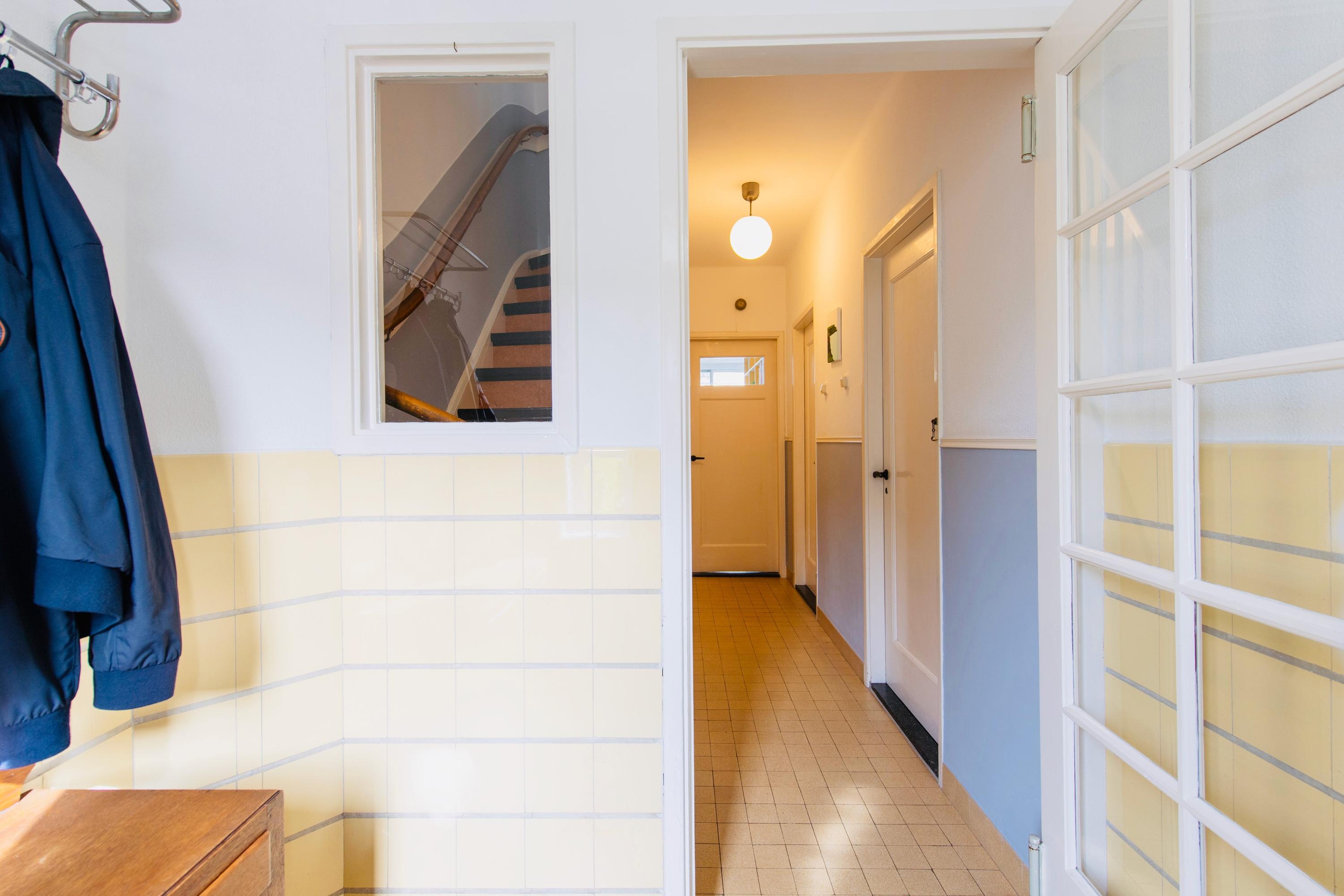 - ruime vestibule met originele Dudok wandtegels, originele brievenbus en aansluitend een hal met trapopgang naar de 1e verdieping. In de gang bevindt zich een handige kelder/provisieruimte.