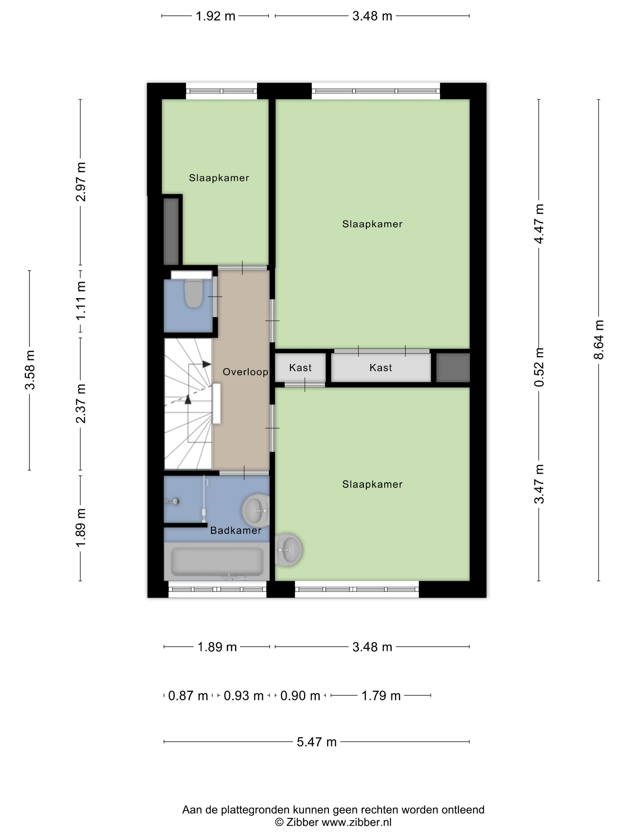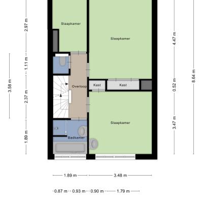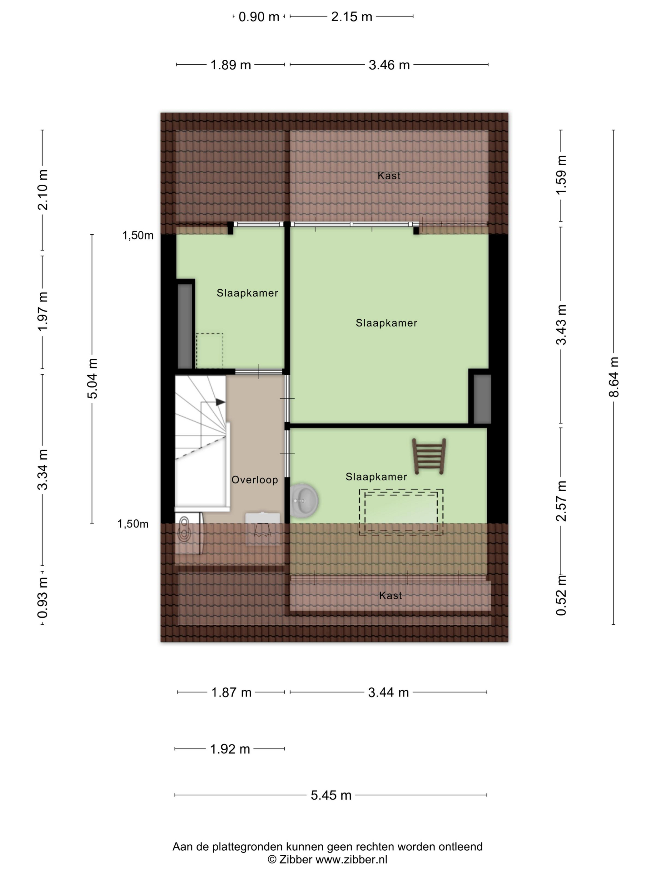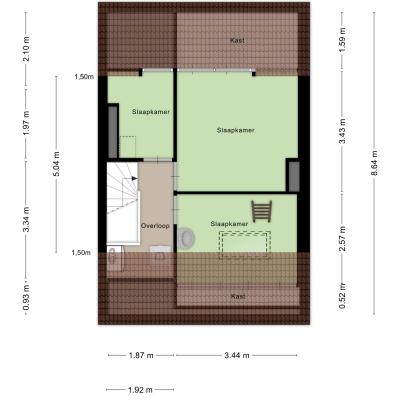 - kleinere kamer die ingericht kan worden als kasten-/ werk- of babykamer