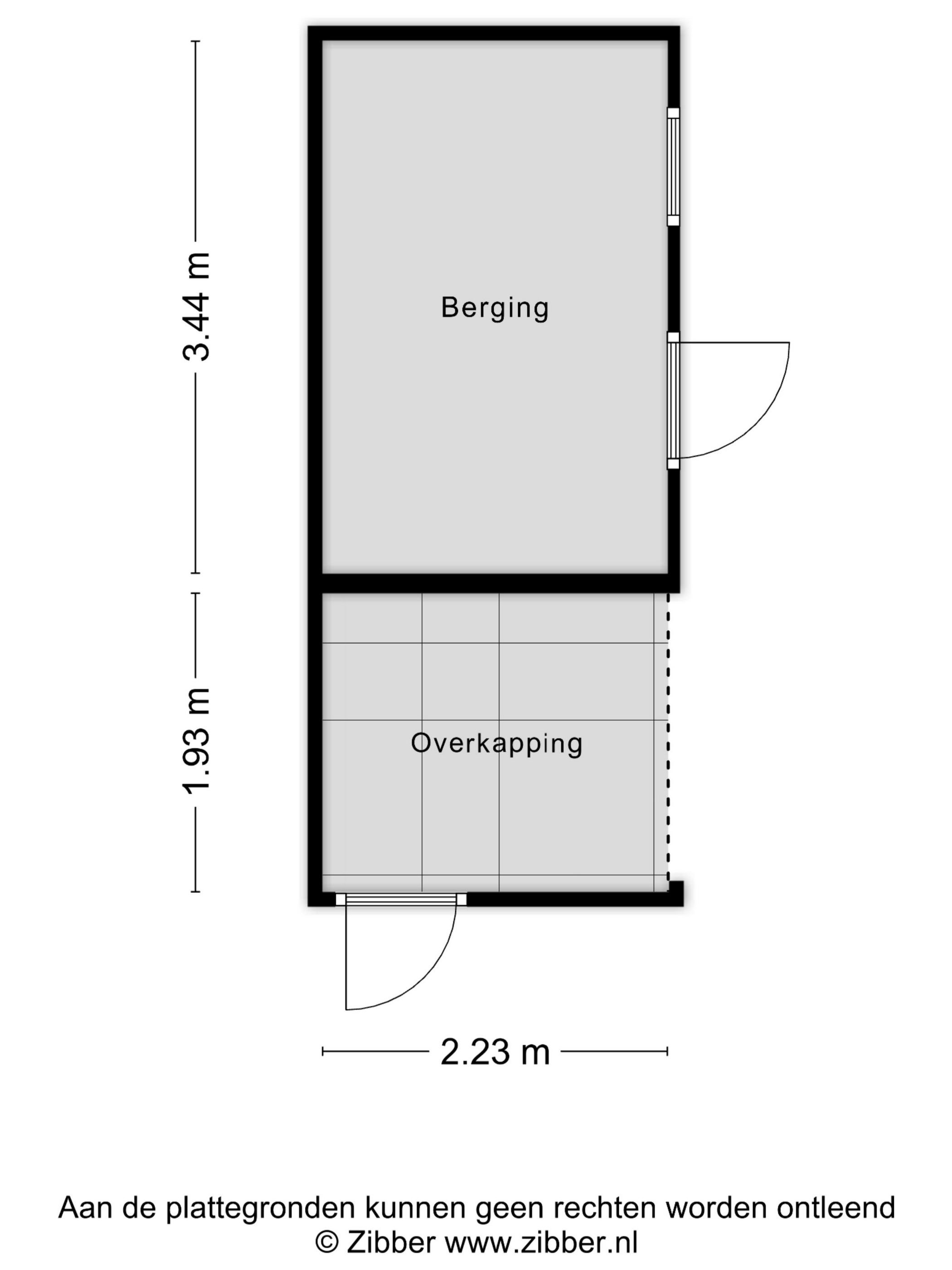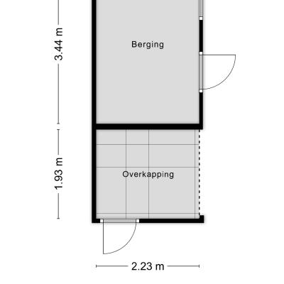 - ruime, stenen berging achterin de tuin met elektra. Aansluitend aan de berging een overkapping met poort en (gesloten) achterom.