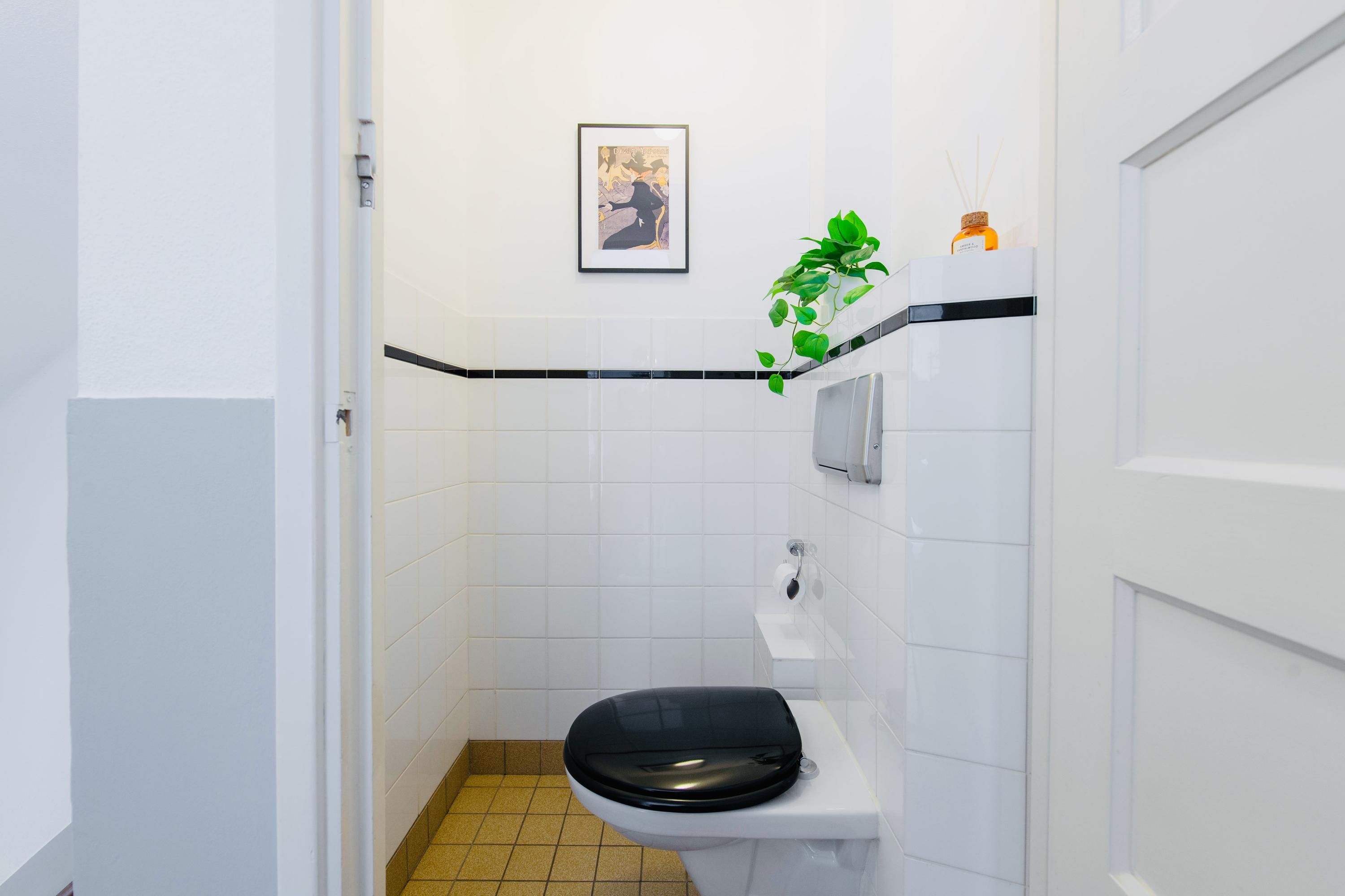 - toiletruimte met wandcloset en fonteintje (toiletruimte begane grond, toilet eerste verdieping en badkamer zijn in dezelfde stijl uitgevoerd).
