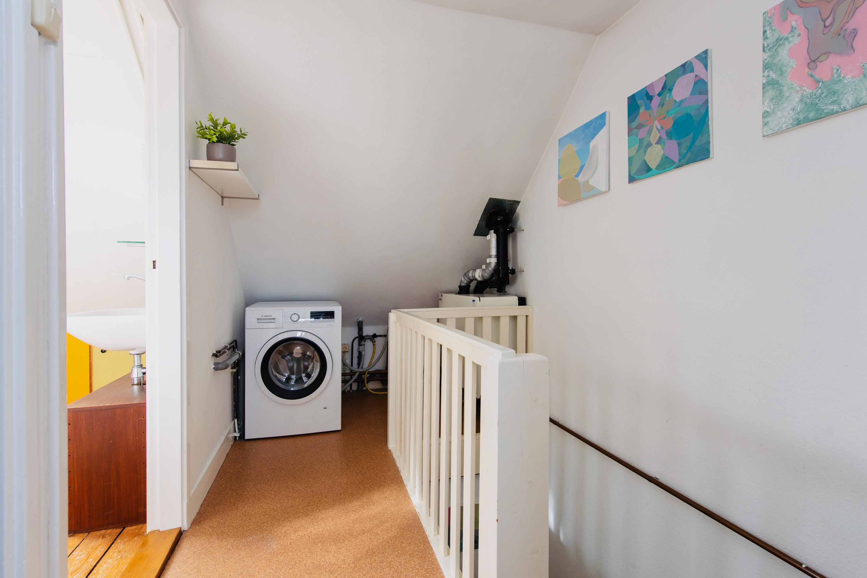 - overloop met opstelling CV HR-combiketel (Atag, 2011), wasmachineaansluiting en omvormer zonnepanelen.