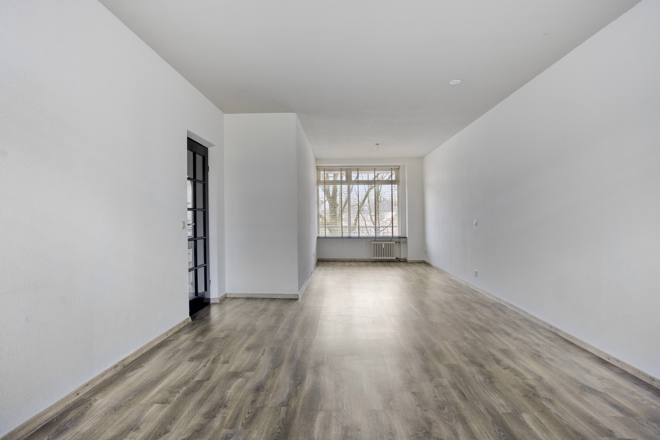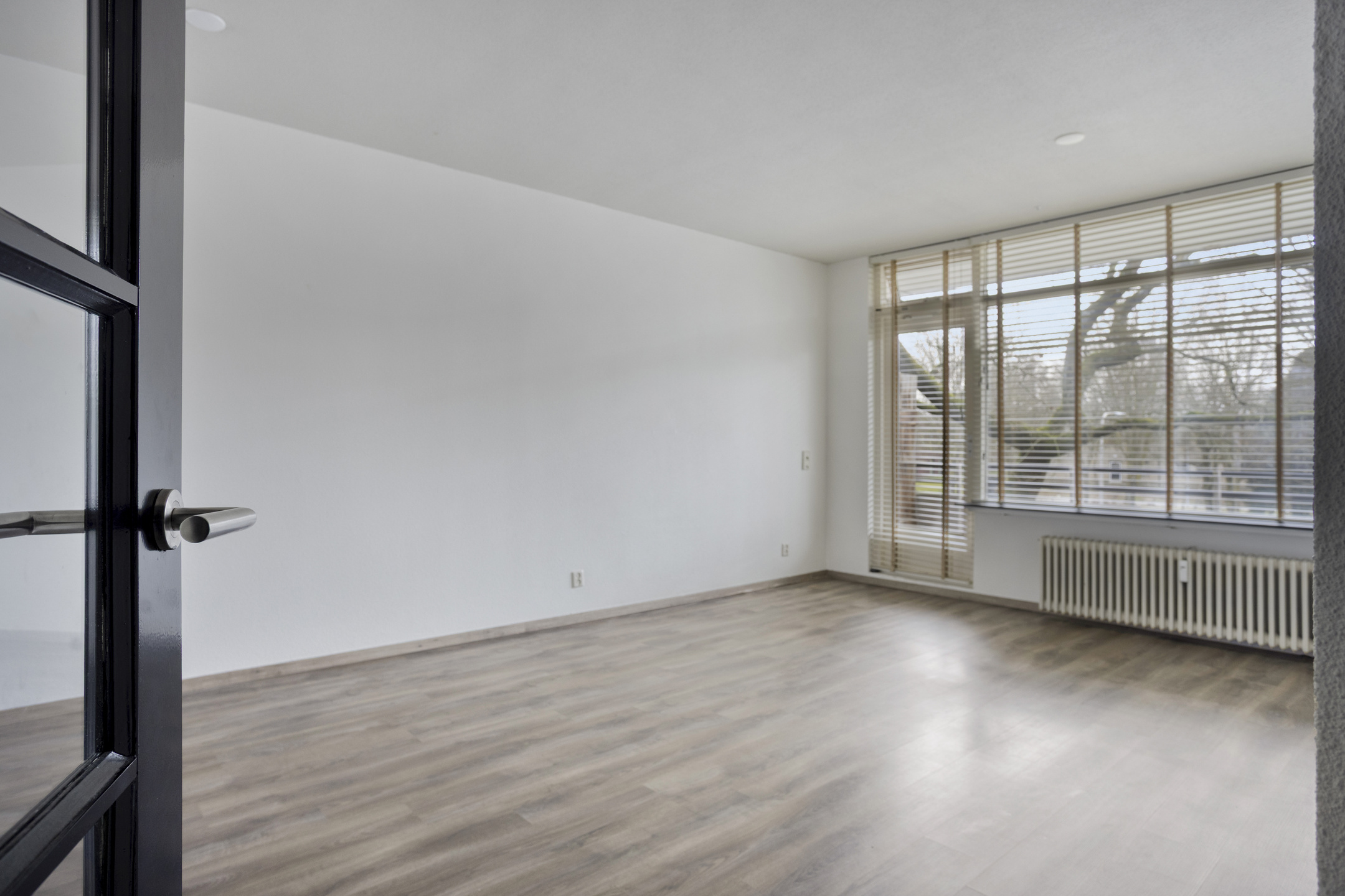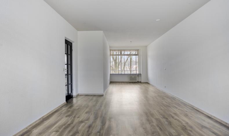 Woonkamer: Een mooie paneeldeur met glas biedt toegang tot de gezellige ruime woonkamer (32 m2). Vanuit de woonkamer heeft u toegang tot een mooi balkon (5 m2) met vrij uitzicht over een breed grasveld met mooie grote bomen richting de Rueckertbaan.