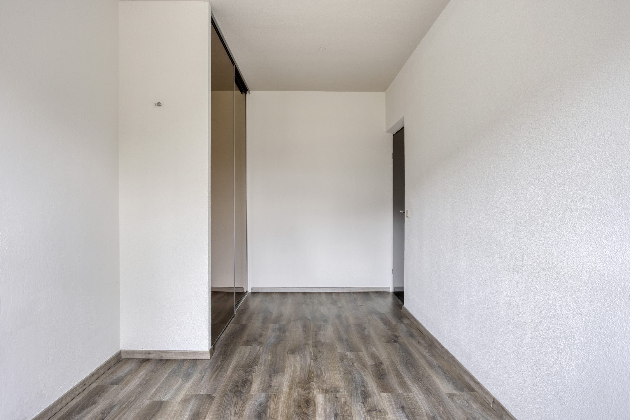 Slaapkamer 2:Ruime slaapkamer (8,6 m2) afgewerkt met laminaatvloer. Inbouwkast v.v. boiler (lease).