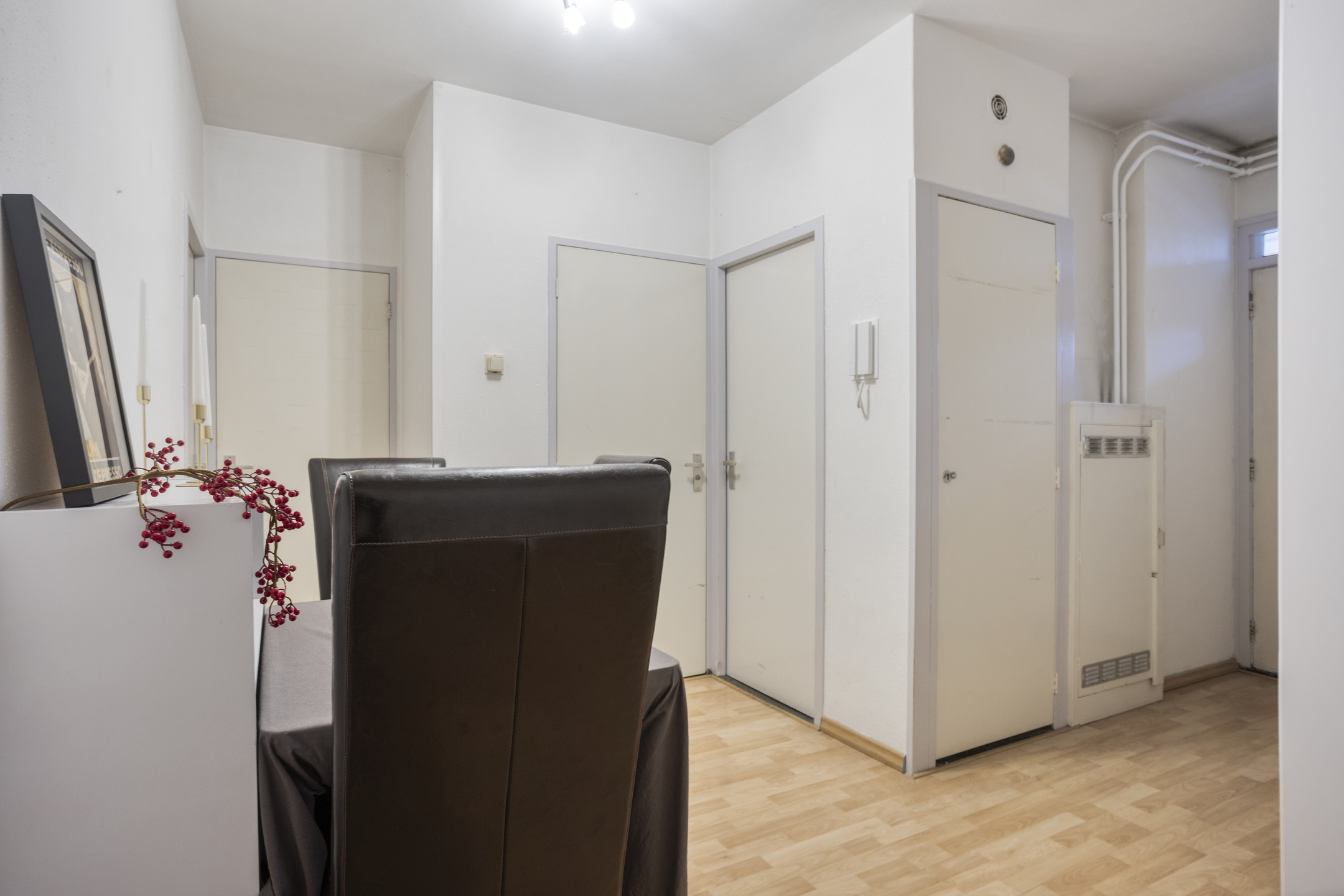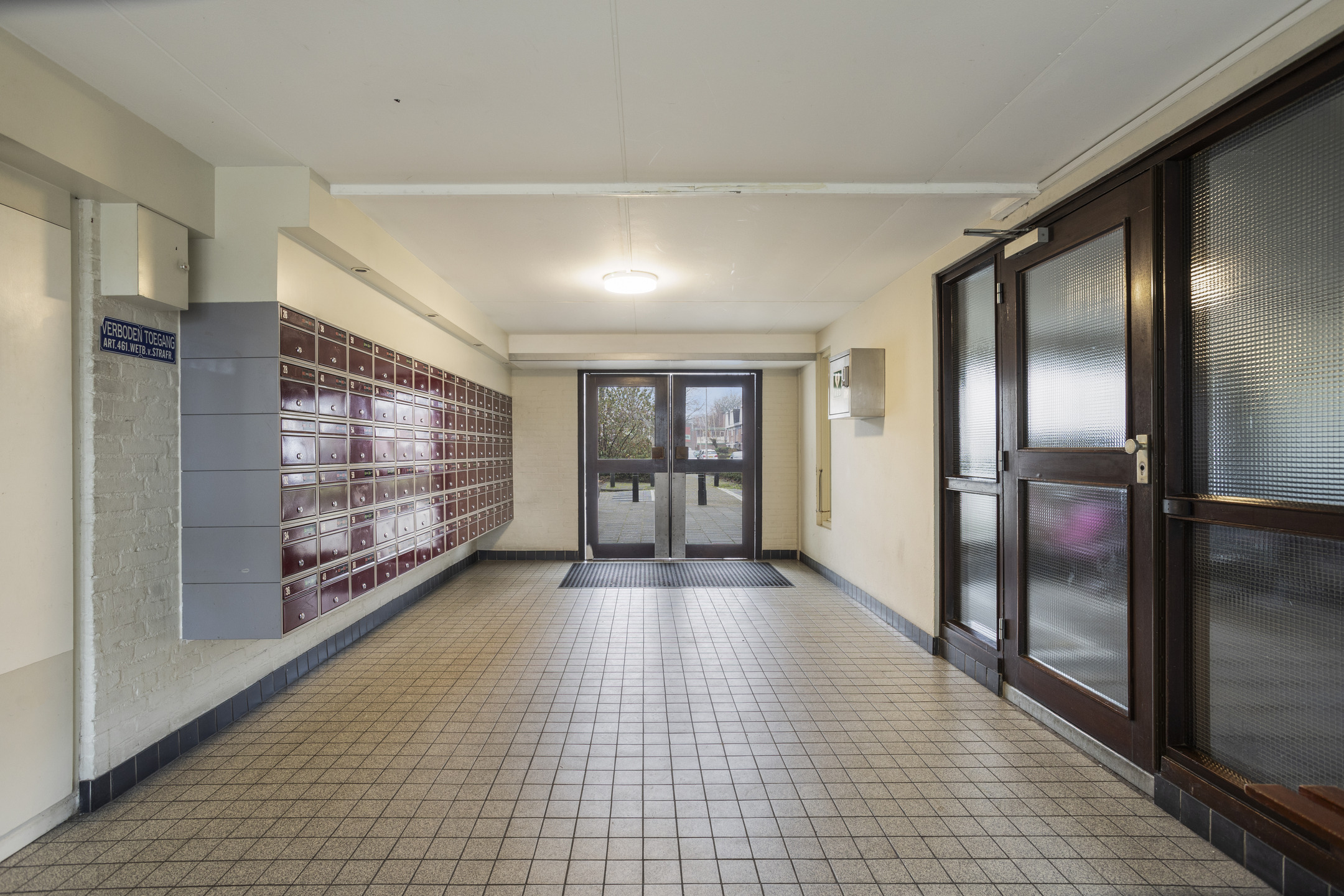 Bij binnenkomst in het complex tref je een nette entree met een bellenplateau en brievenbussen. Vanuit hier heb je toegang tot de lift en het trappenhuis. Op de begane grond vind je tevens de eigen berging, ideaal voor het stallen van fietsen of het opbergen van extra spullen.