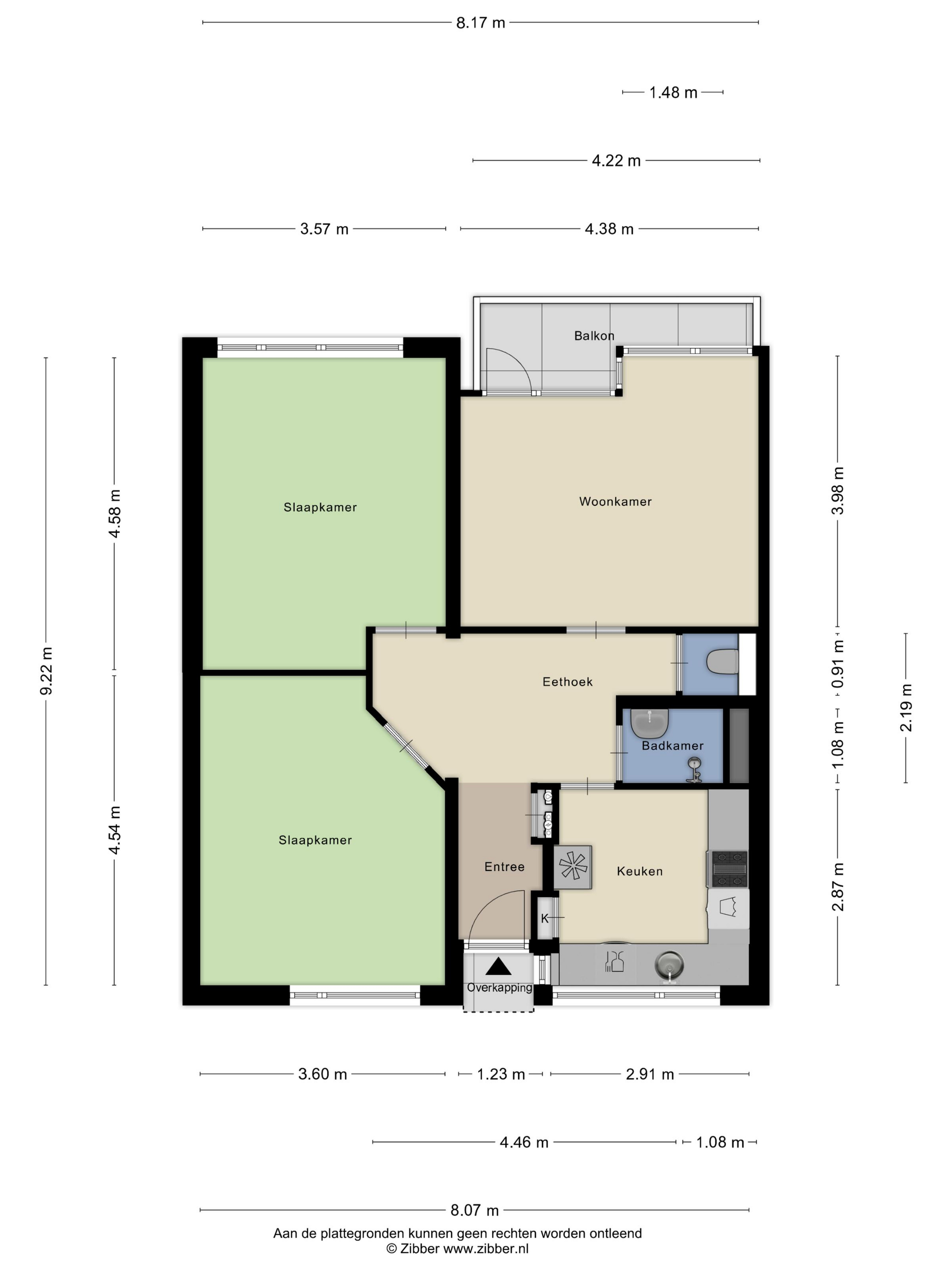 Het appartement telt momenteel drie slaapkamers van royaal formaat, wat zorgt voor veel flexibiliteit in gebruik, bijvoorbeeld als slaap-, werk- of logeerkamer. Zoals genoemd is de indeling relatief eenvoudig aan te passen naar een andere kamerindeling. De doucheruimte is voorzien van een inloopdouche en wastafel. Daarnaast is er een separate toiletruimte met wandcloset.