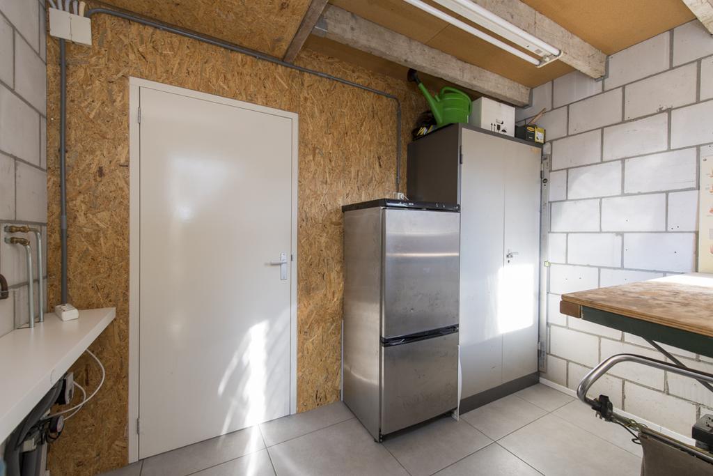 Vanuit de tuin bereikt u de berging met bergzolder en is er toegang tot de salon/multifunctionele ruimte (voorheen garage). De berging is voorzien van elektra en een wastafel. Middels een vlizotrap is de ruime bergzolder te bereiken.
