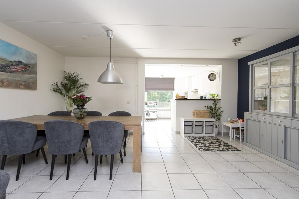 De keuken is voorzien van een lichte keukeninrichting in hoekopstelling met granieten aanrechtblad met verhoogd bargedeelte. Als inbouwapparatuur treft u een 4-pits gaskookplaat, afzuigkap, koelkast, combimagnetron, vaatwasser en een boiler. Bijkeuken met de aansluitingen ten behoeve van de wasapparatuur.