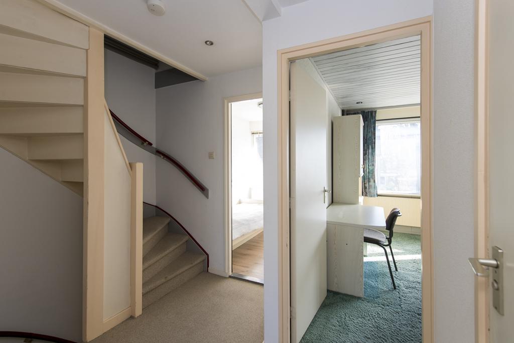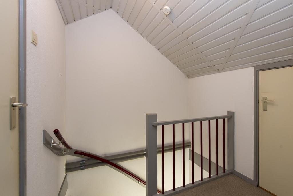 Middels vaste trap te bereiken zolderverdieping. Vanuit de voorzolder is de bergruimte onder de schuine kant bereikbaar en de bergruimte met de opstelling van de Cv-ketel.