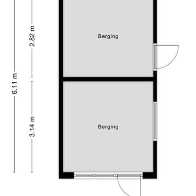 De stenen berging is verdeeld in twee delen, beide apart bereikbaar. In de berging is elektra aanwezig.