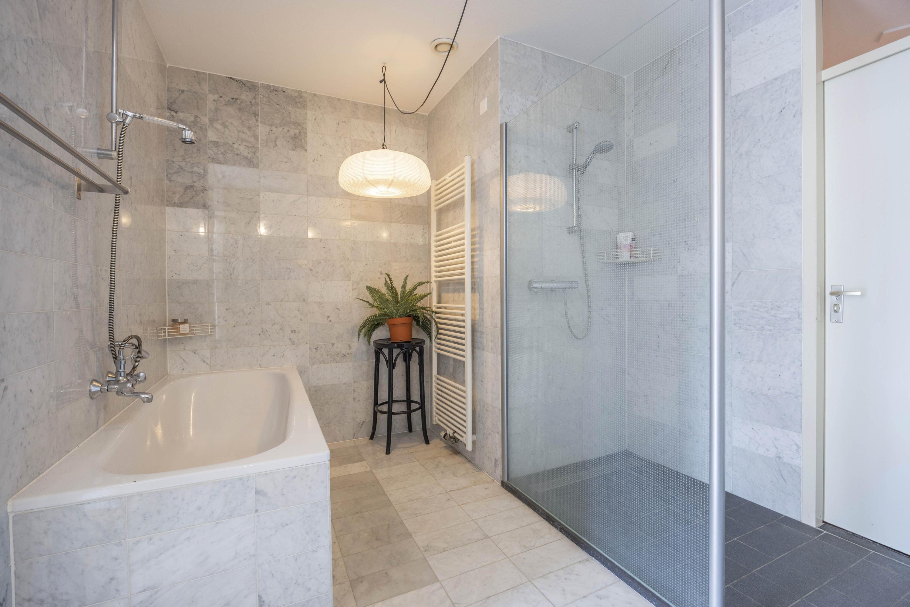 • Badkamer en toilet zijn afgewerkt met marmer.
