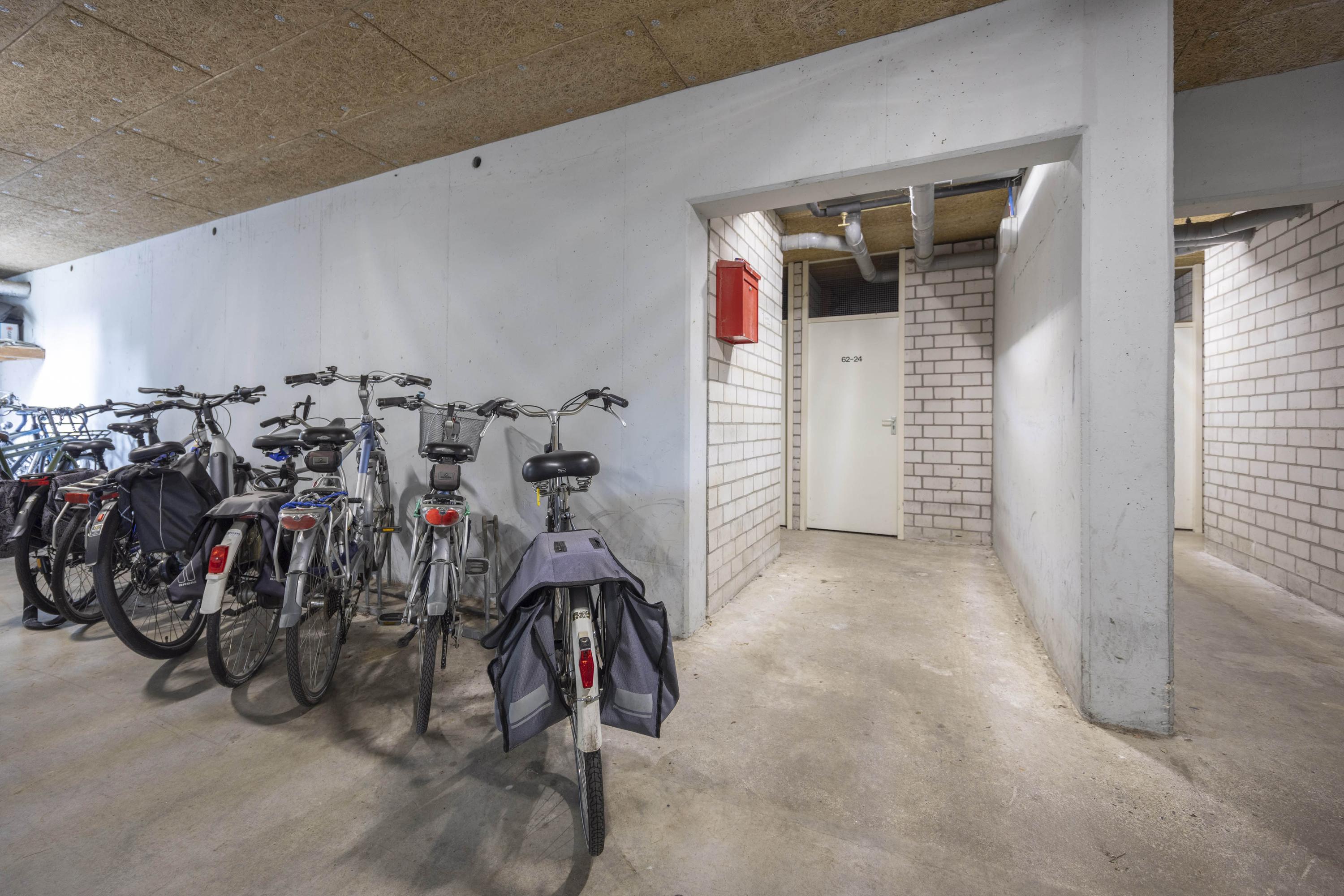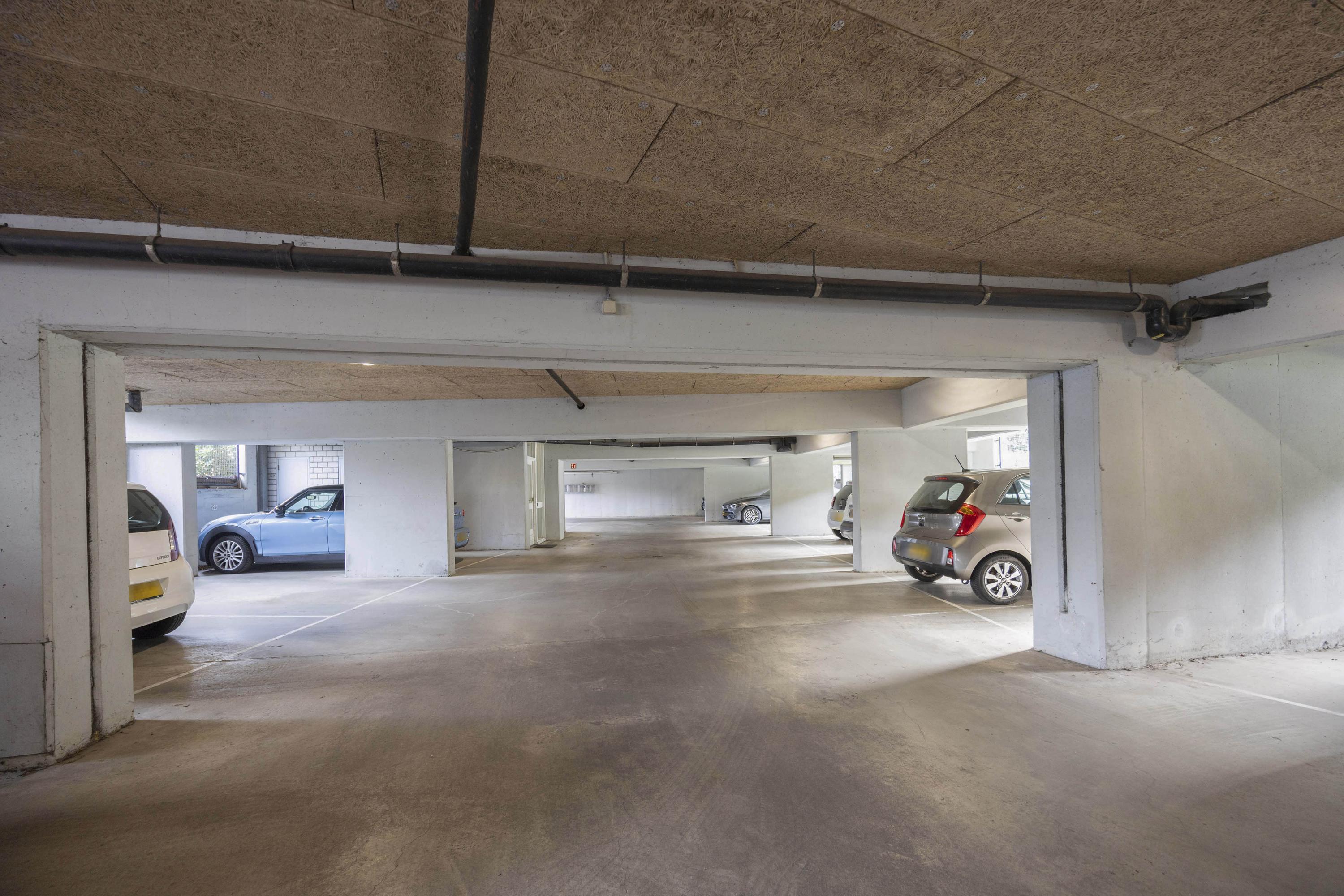 In de kelder bevinden zich de eigen parkeerplaats en berging, evenals een gezamenlijke fietsenstalling.