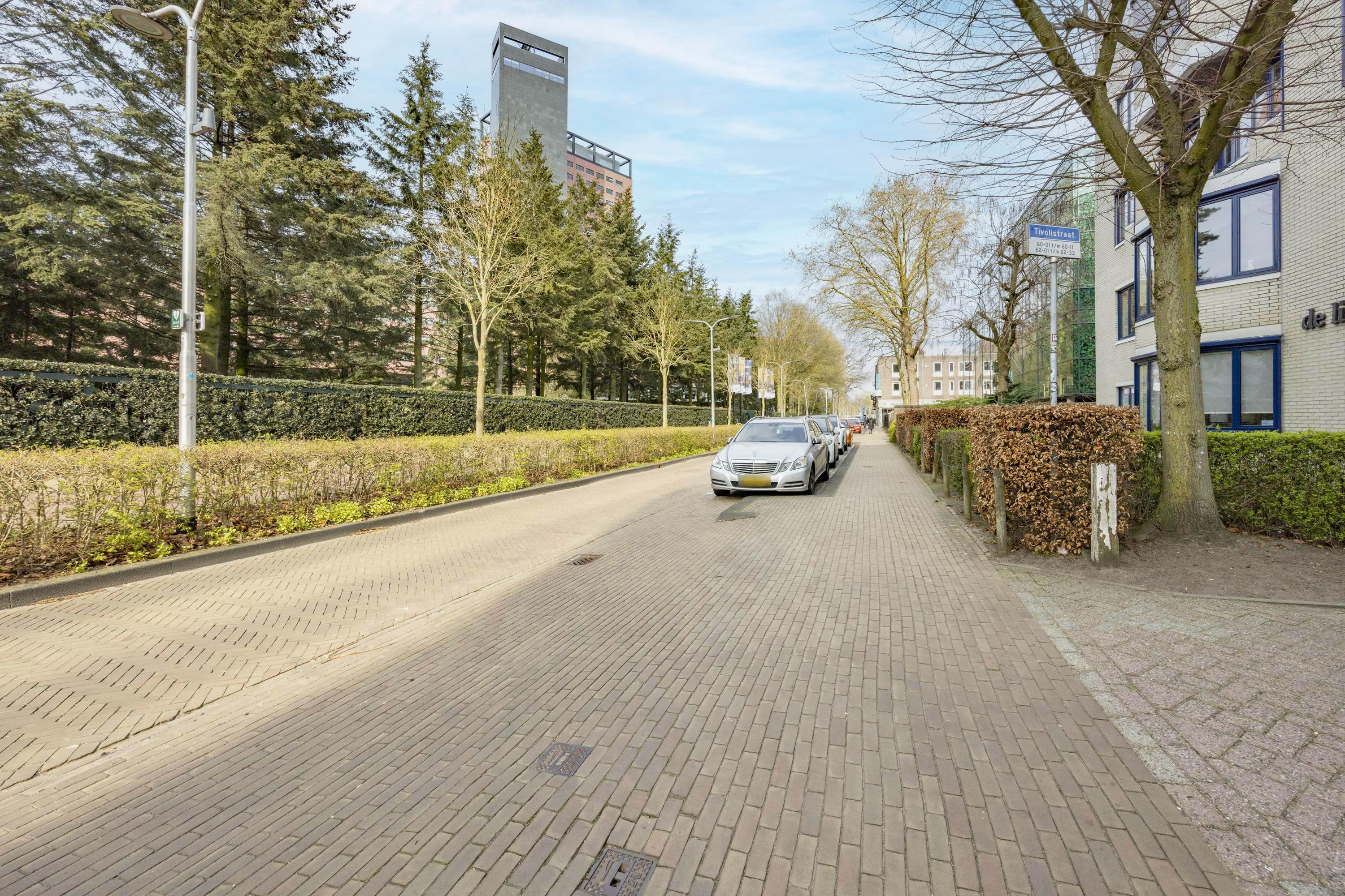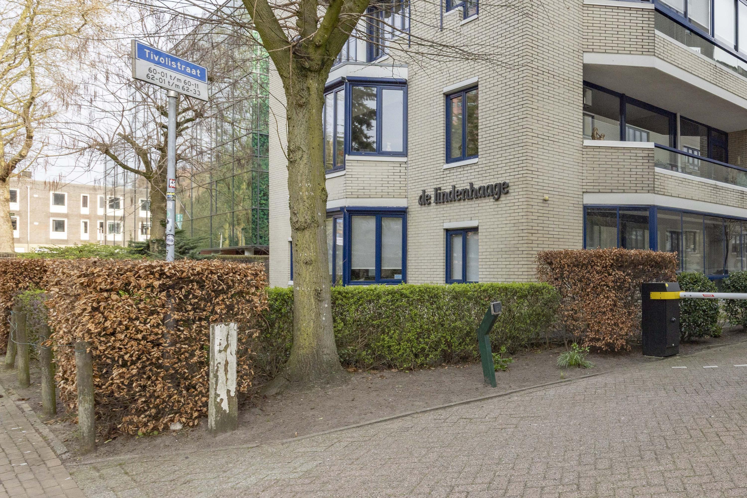 Via de Tivolistraat bereikt u het afgesloten terrein met twee appartementengebouwen en parkeergelegenheid voor bewoners en bezoekers. De entree van het appartement bevindt zich aan de achterzijde van gebouw 2 en is voorzien van een video-intercom, brievenbussen, lift en trappenhal.