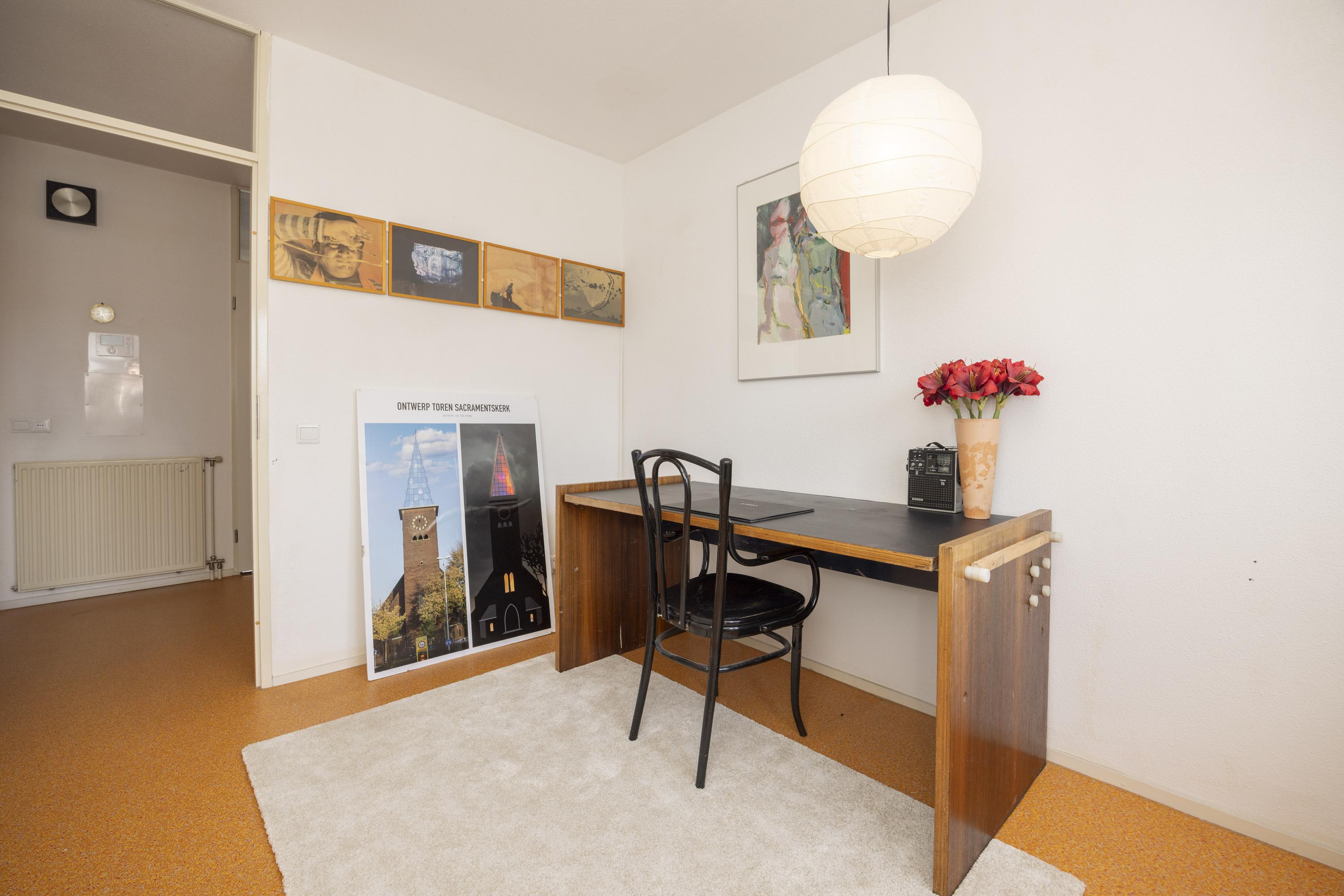 De tweede slaapkamer (ca. 9 m²) ligt aan het binnenterrein.