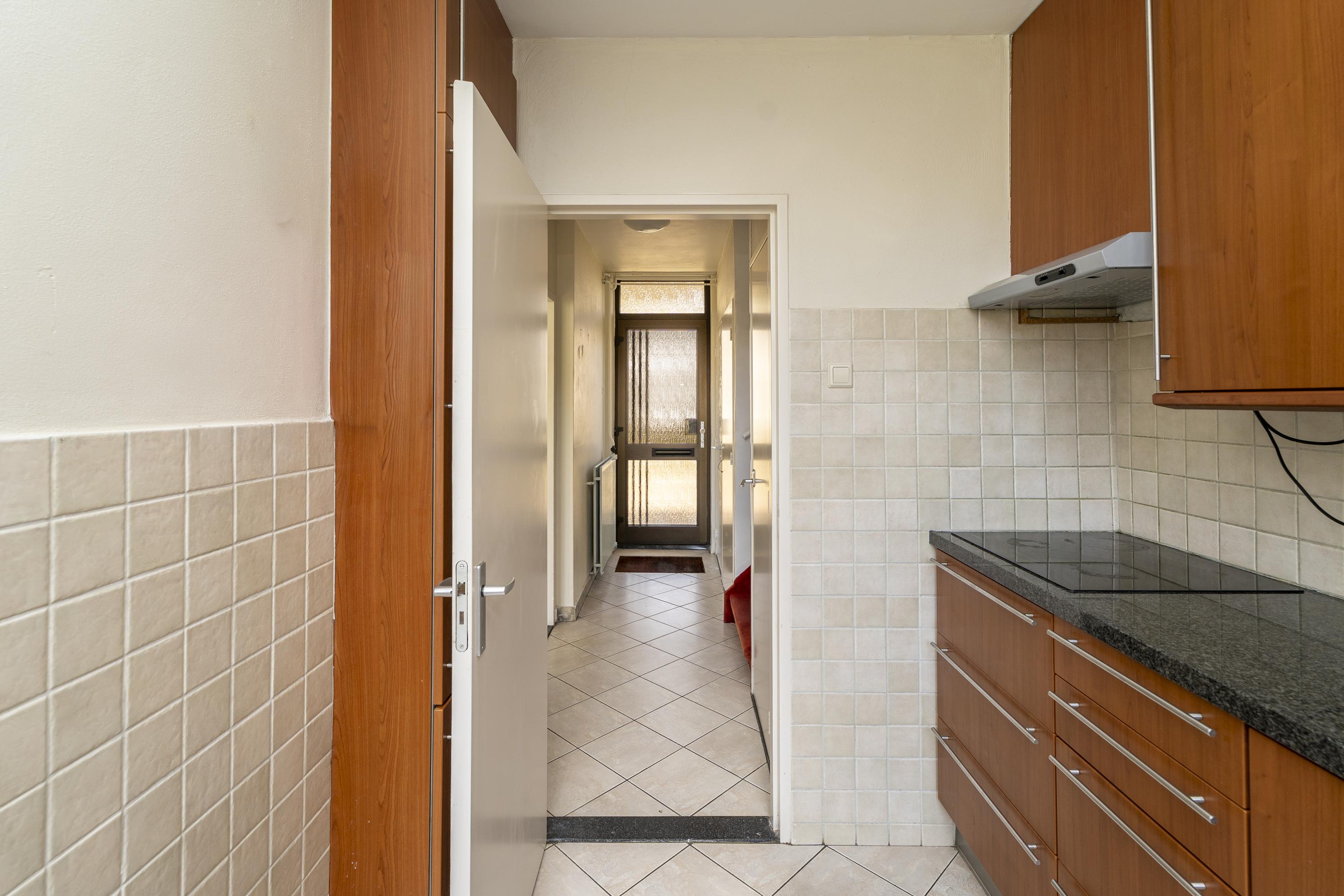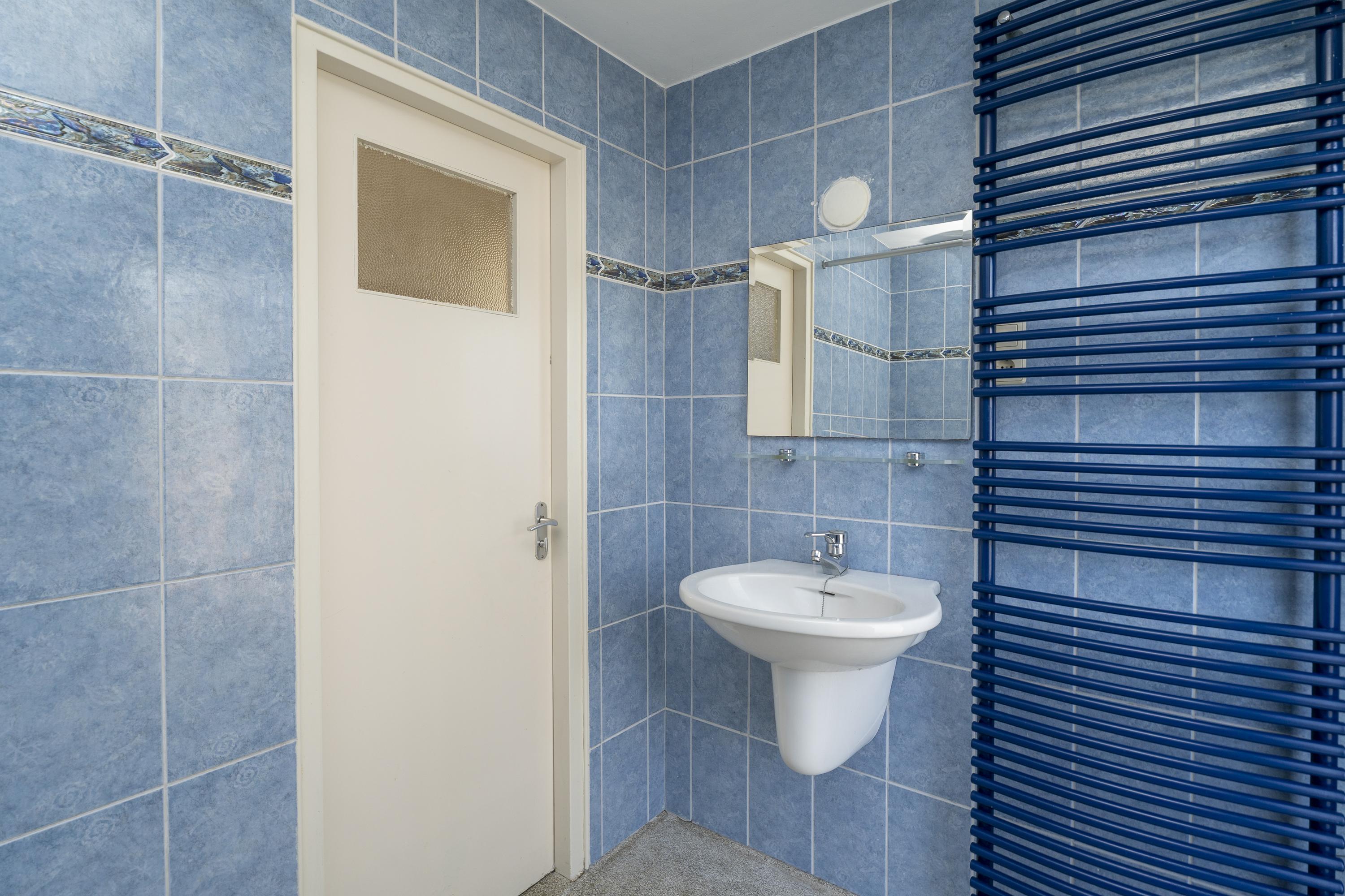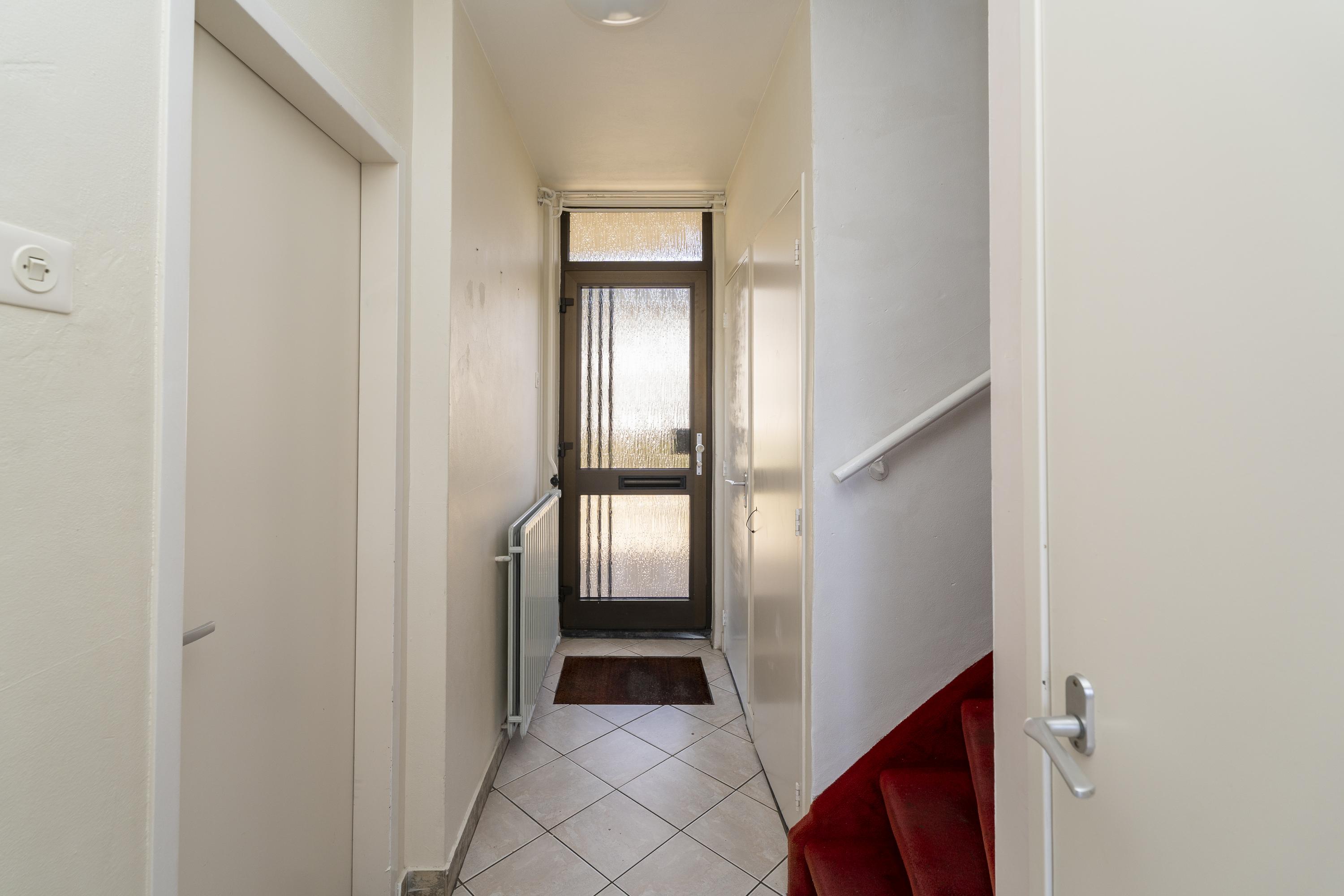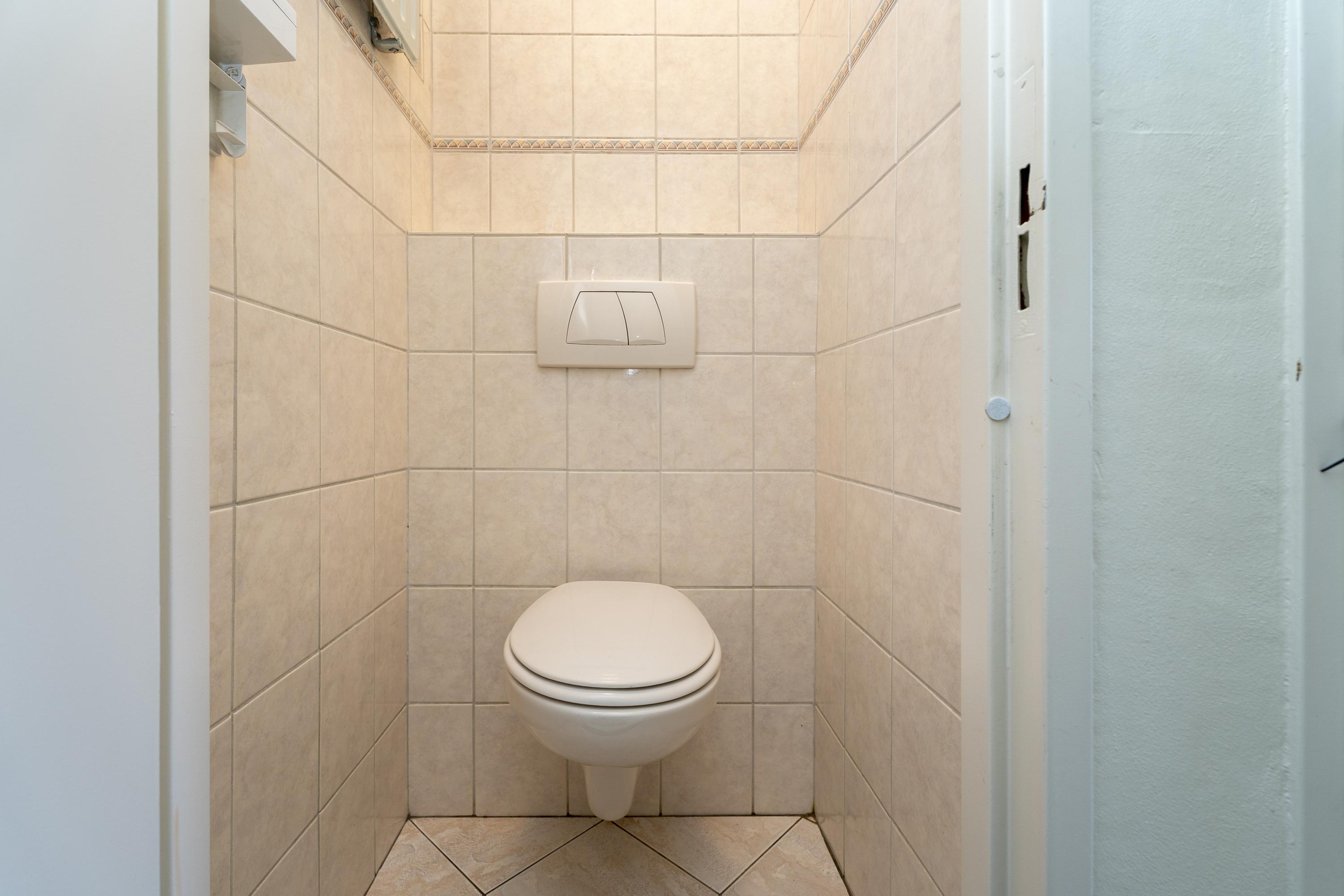 Via de voortuin bereik je de entree met hal, toiletruimte met inbouwcloset, trapkast met meterkast (5 groepen, 1 aardlekschakelaar en een 2-fase groep) en een separate bergkast.
