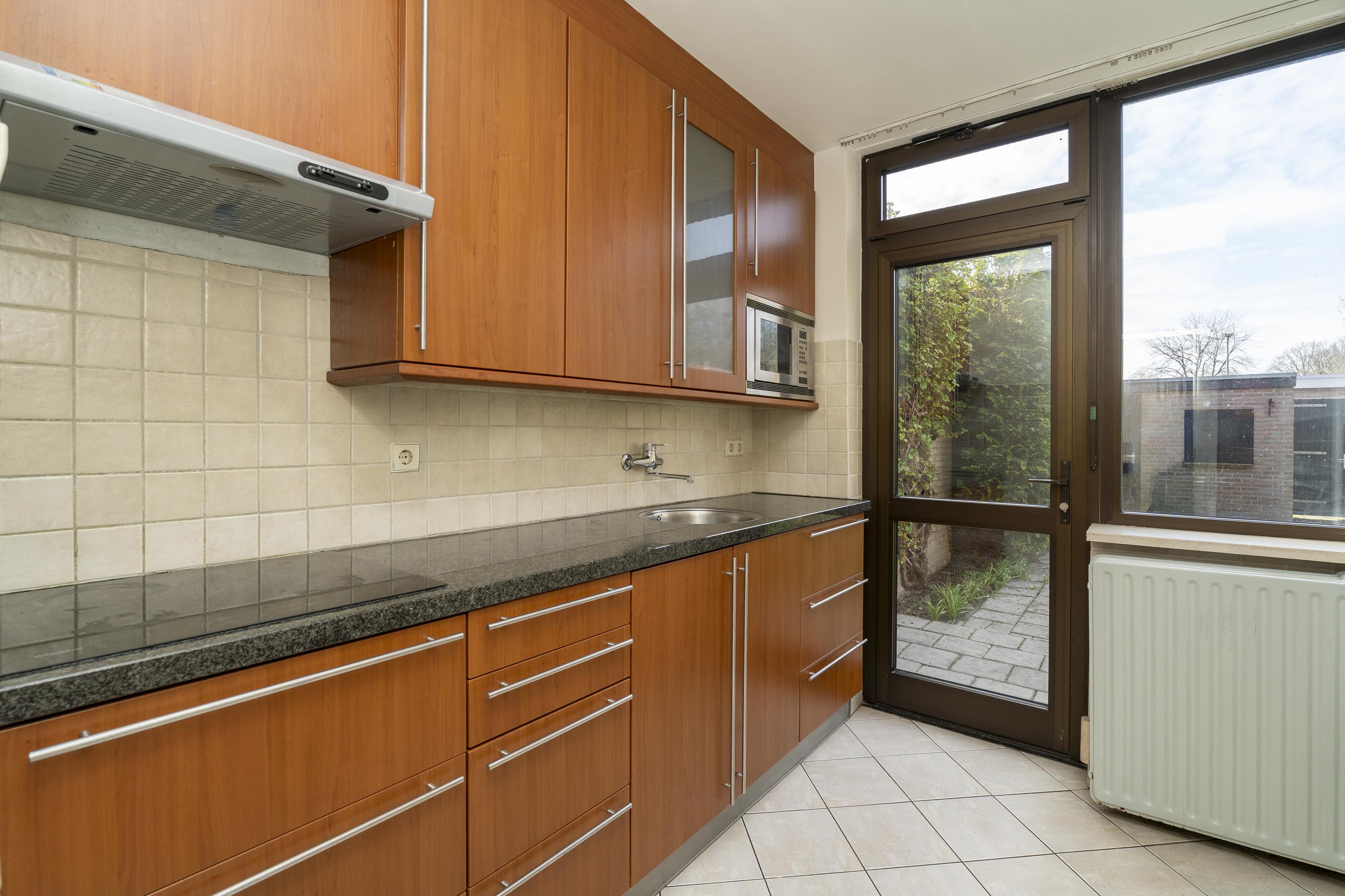 De gesloten keuken is netjes uitgevoerd en voorzien van een inductiekookplaat, afzuigkap, magnetron, close-in boiler (Daalderop) en een granieten werkblad.