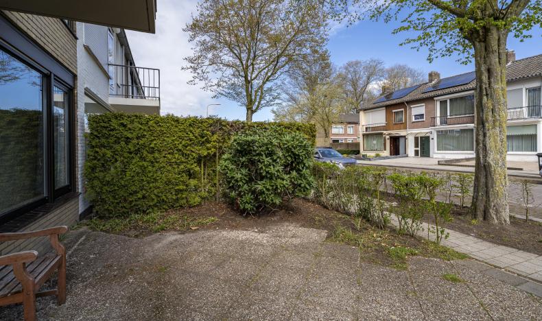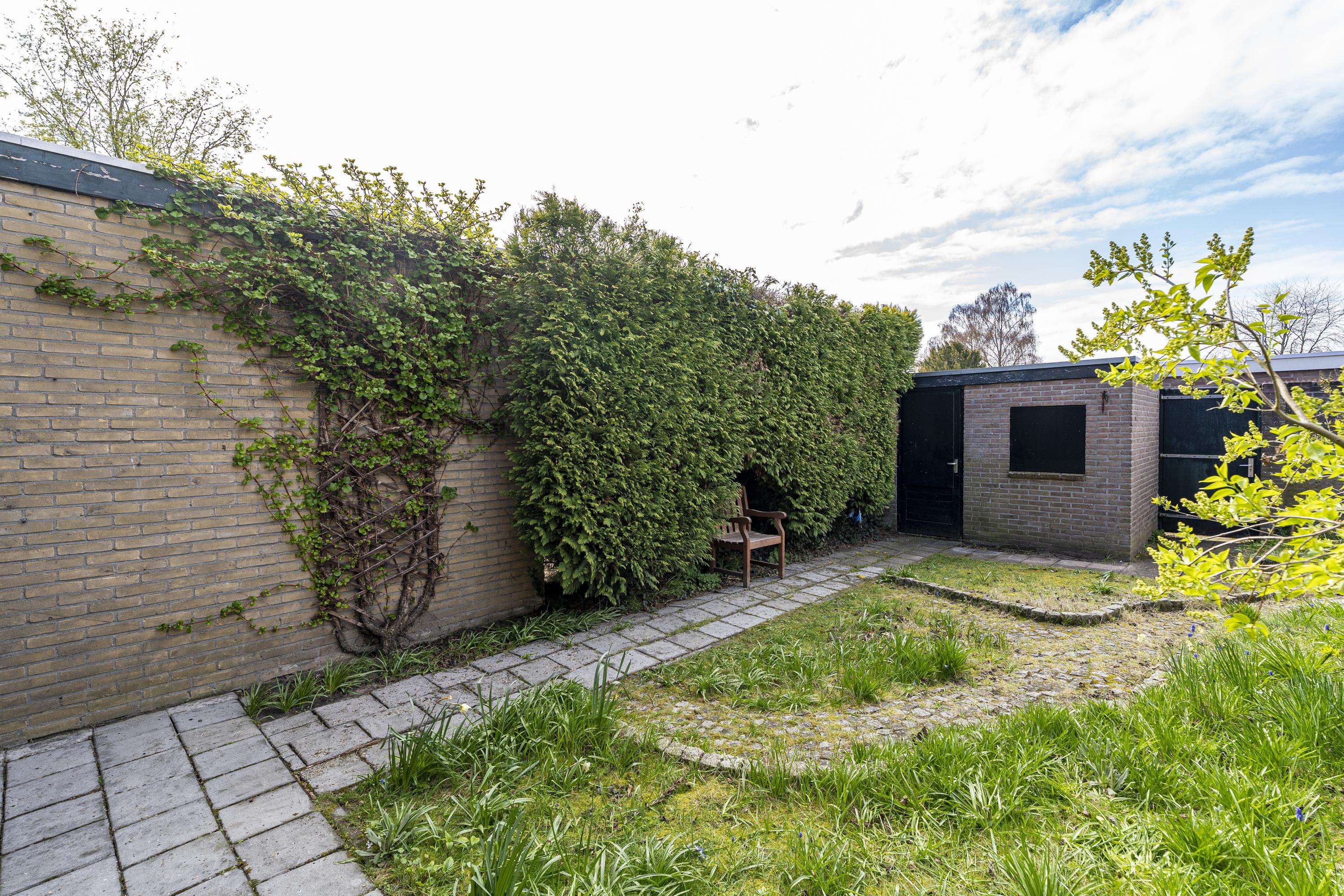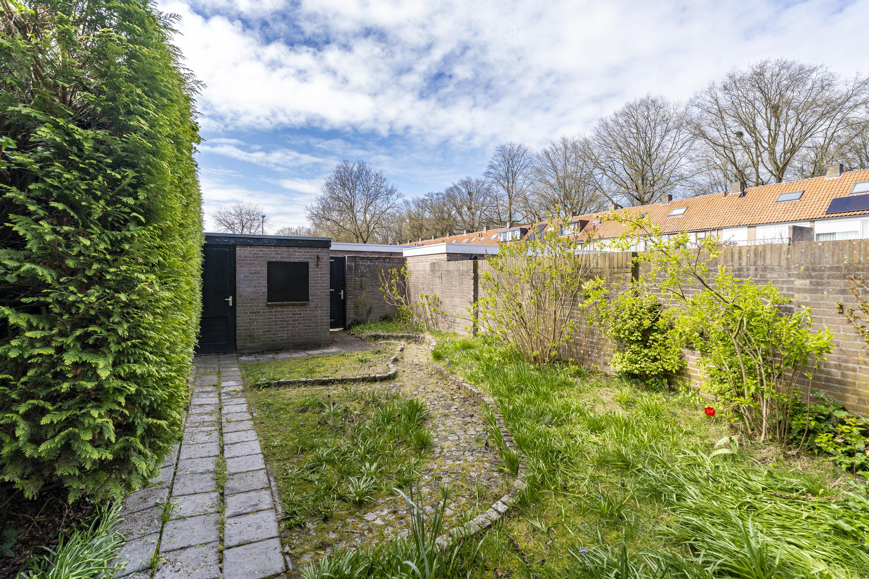 De op het westen gelegen achtertuin is eenvoudig aangelegd en biedt volop mogelijkheden om deze naar eigen smaak in te richten. Achterin bevindt zich een stenen berging en een achterom.