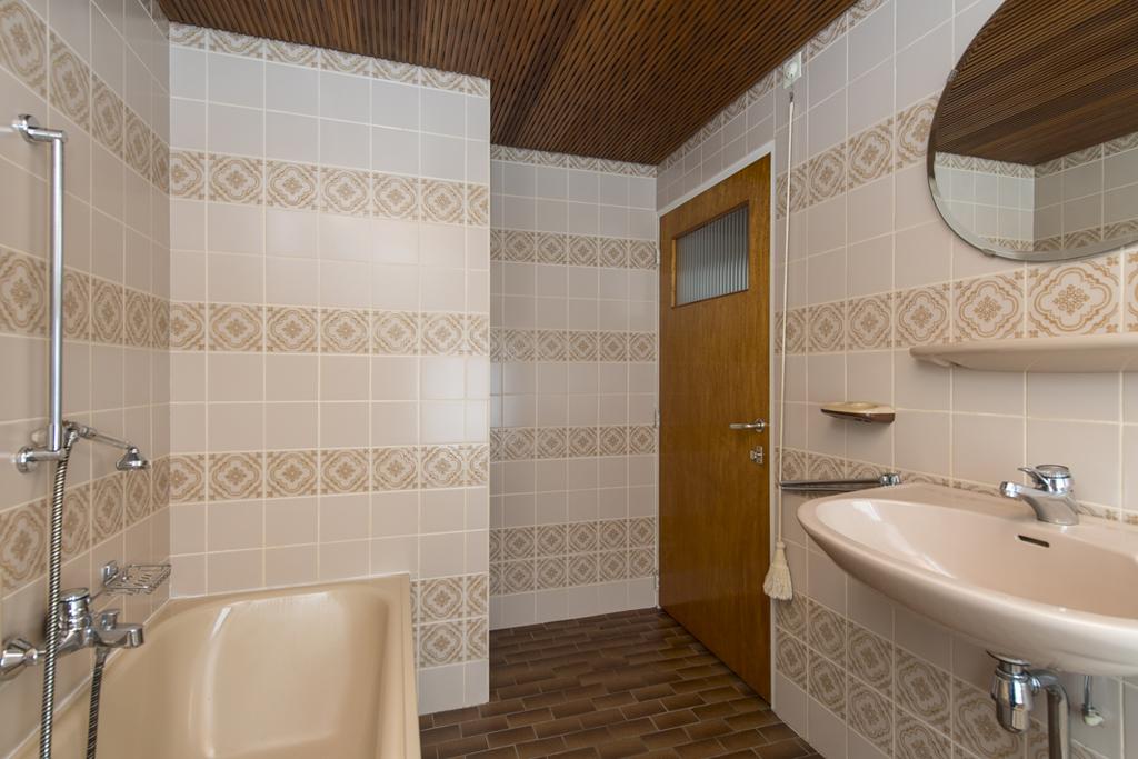 Er zijn 3 slaapkamers, waarvan 2 met vaste kast en wastafel. De badkamer is voorzien van een douche, ligbad, toilet en wastafel. Een luik op de overloop geeft toegang tot de 2e verdieping.