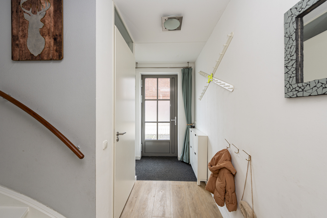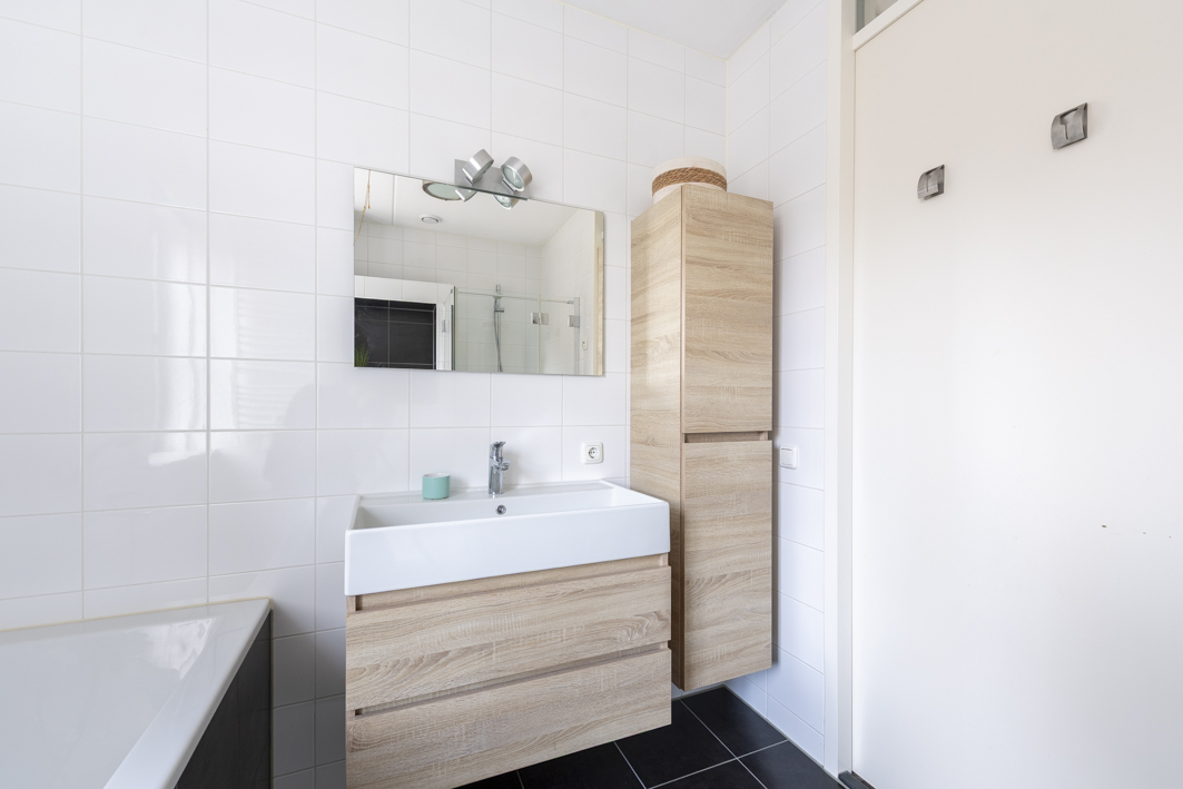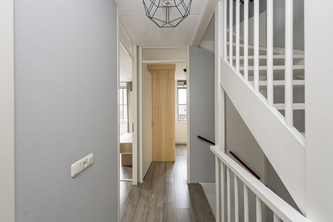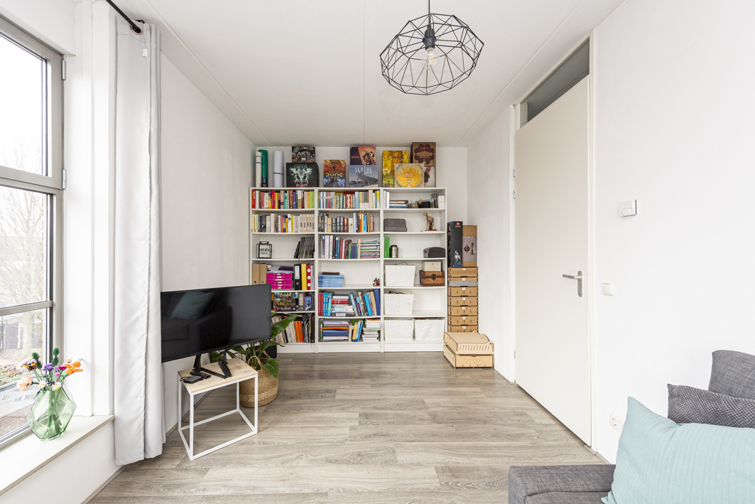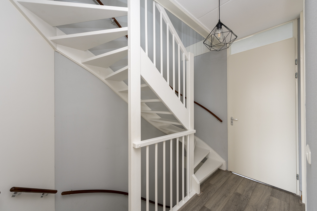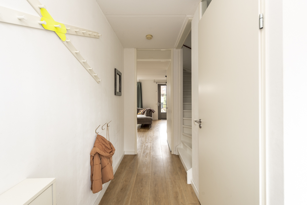 Dankzij de grote raampartij en de tuindeur aan de achterzijde is er veel lichtinval en een prettig contact met de tuin. Vanuit de woonkamer is tevens de praktische berging onder de trap bereikbaar.