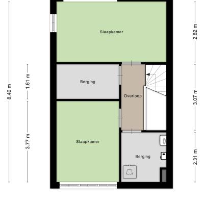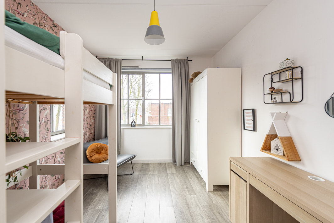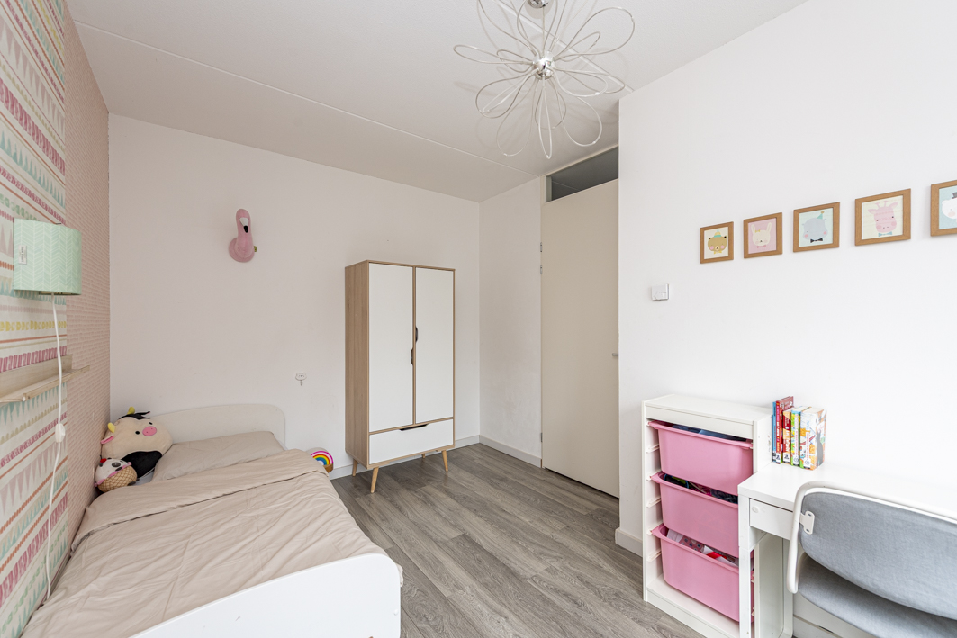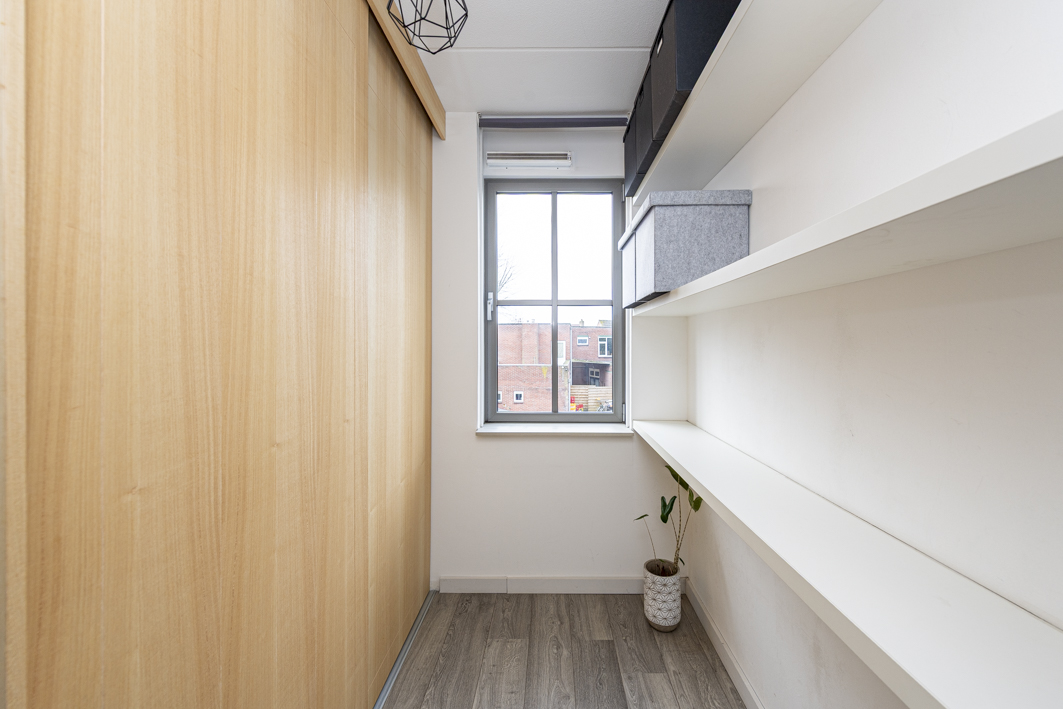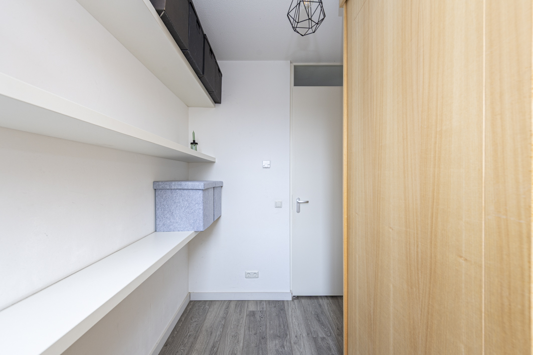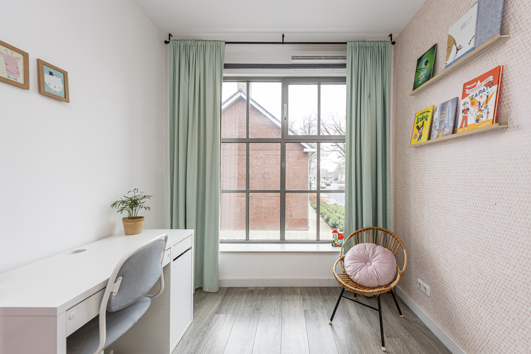 Dankzij de grote raampartij en de tuindeur aan de achterzijde is er veel lichtinval en een prettig contact met de tuin. Vanuit de woonkamer is tevens de praktische berging onder de trap bereikbaar.