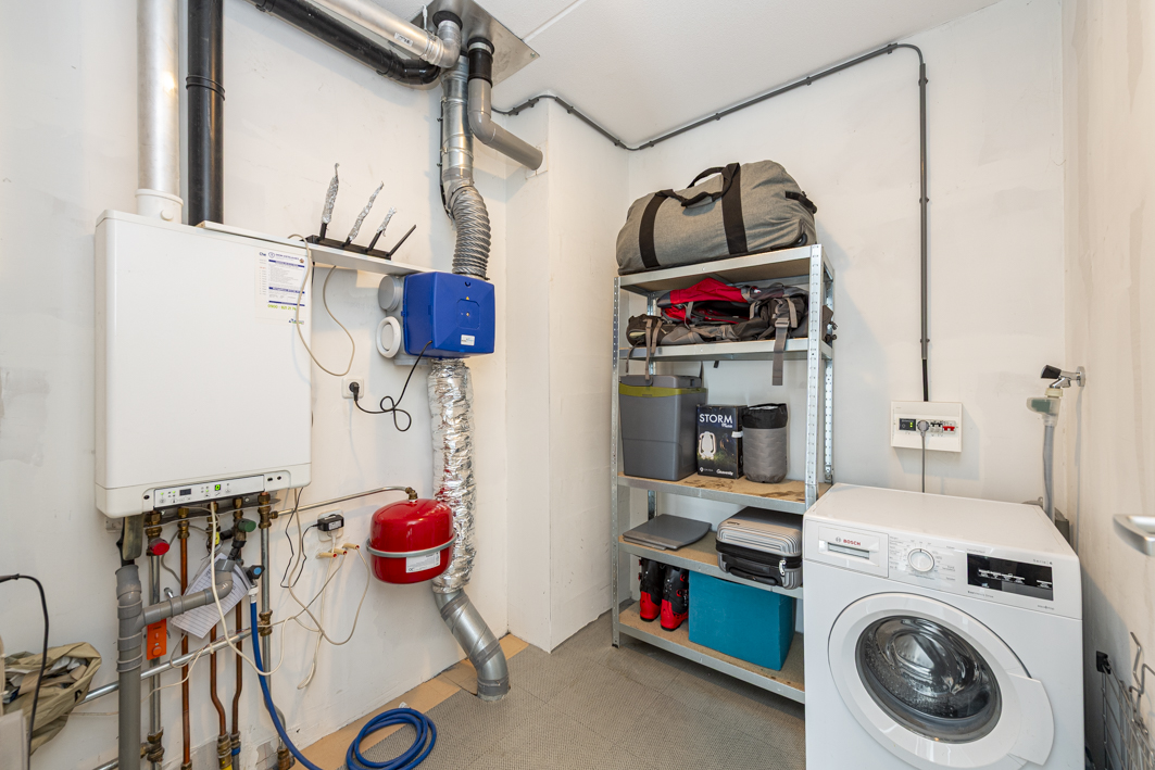 Via een vaste trap bereik je de royale tweede verdieping met nog eens twee ruime slaapkamers, een inpandige bergruimte en een aparte technische ruimte met de CV-ketel (2015) en aansluitingen voor wasapparatuur.