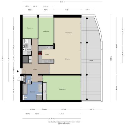 Het appartement heeft drie ruime slaapkamers. De hoofdslaapkamer heeft een oppervlakte van circa 27 m2 , een op-maat-kastenwanden en een schuifpui naar het dakterras. Slaapkamer 2 heeft een oppervlakte van circa 12 m2 en een wastafelmeubel. Slaapkamer 3 is ca. 10 m2. Alle slaapkamers zijn afgewerkt met vloertegels en stucwerk wanden en plafonds. De badkamer is voorzien van een inloopdouche, ligbad, toilet en een dubbel wastafelmeubel. Verder een bijkeuken/berging met opstelling van de warmtepomp, warmte terugwininstallatie en met aansluitingen voor de wasmachine en droger.