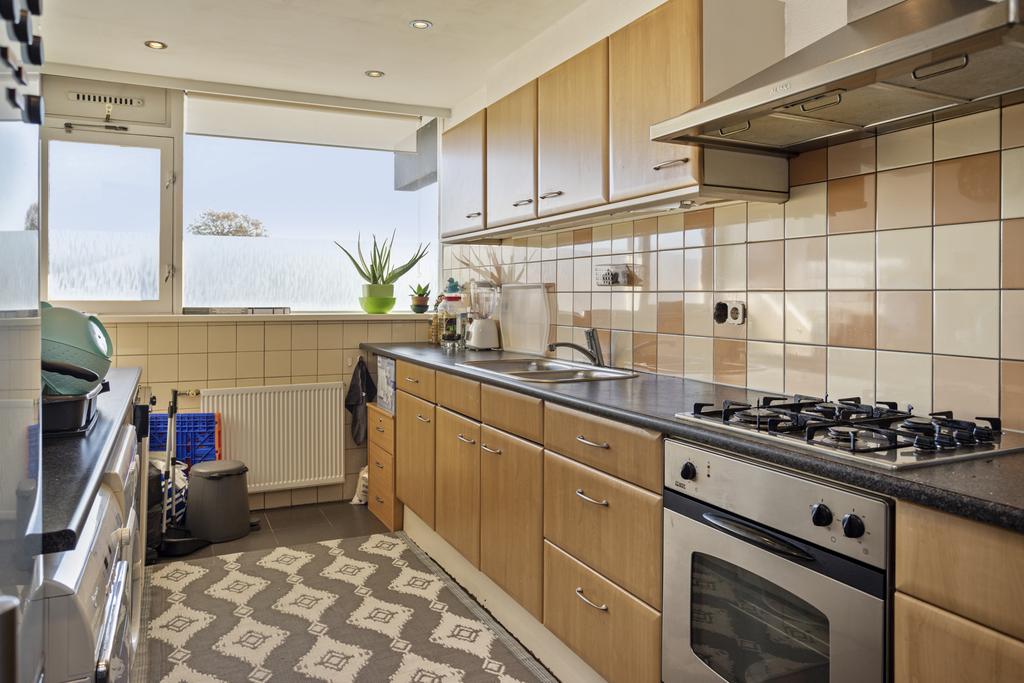 De keuken heeft een nette inrichting voorzien van een 4-pits gasfornuis, vaatwasser, een afzuigkap, oven, veel werkruimte, kastruimte en de aansluitingen ten behoeve van de wasmachine. In de inbouwkast staat de CV-combiketel uit 2011 opgesteld.