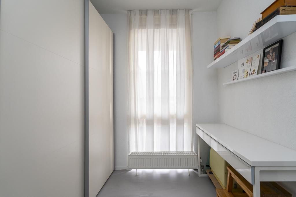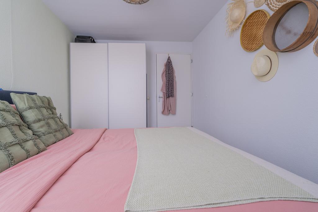 De tweede slaapkamer nu in gebruik als kastenkamer en is vanuit de woonkamer te bereiken. De slaapkamer is gelegen aan de voorzijde, de galerijzijde, van de woning.