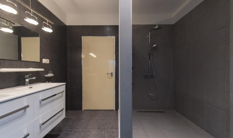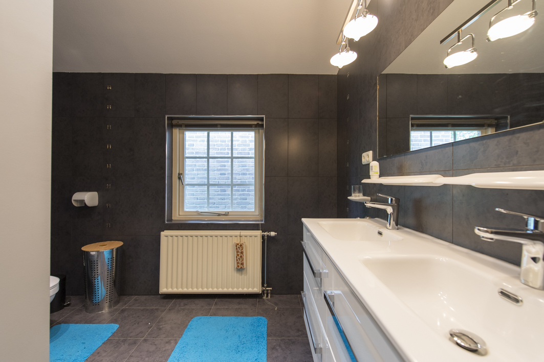 De badkamer is oorspronkelijk in 2004 gemoderniseerd maar de inloopdouche is uit 2021 en de wastafels met meubel uit 2023. Tevens is hier een toilet aanwezig.