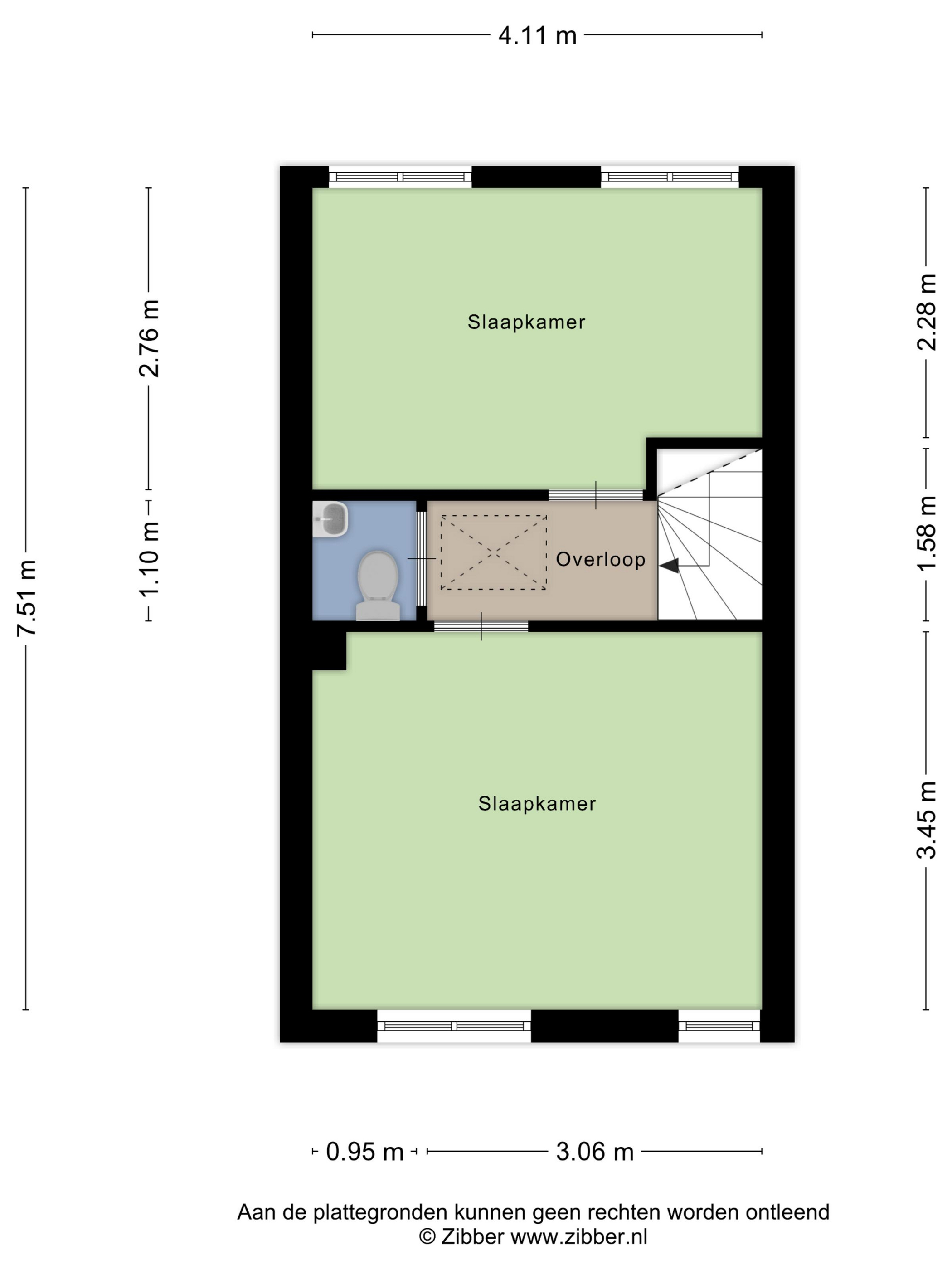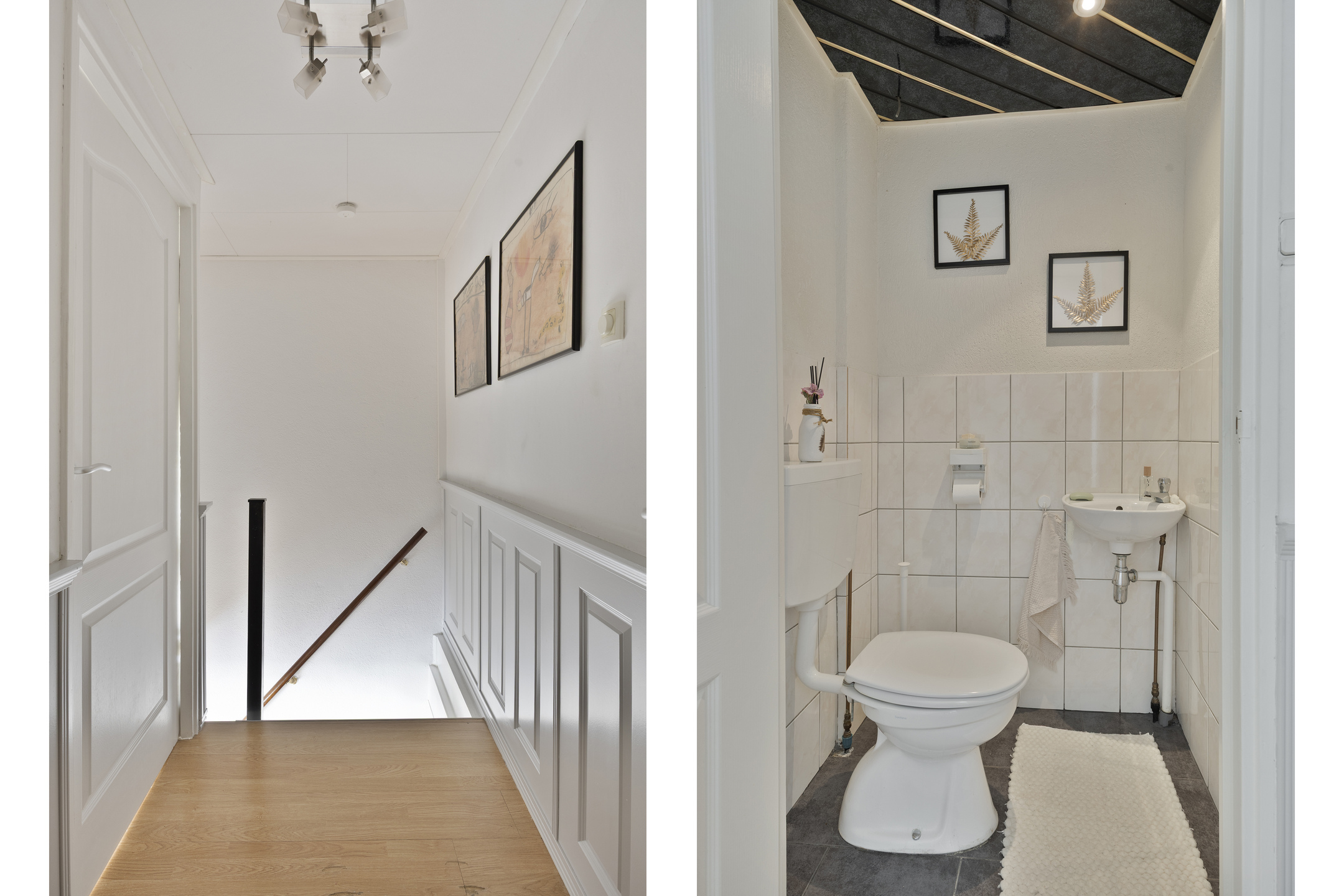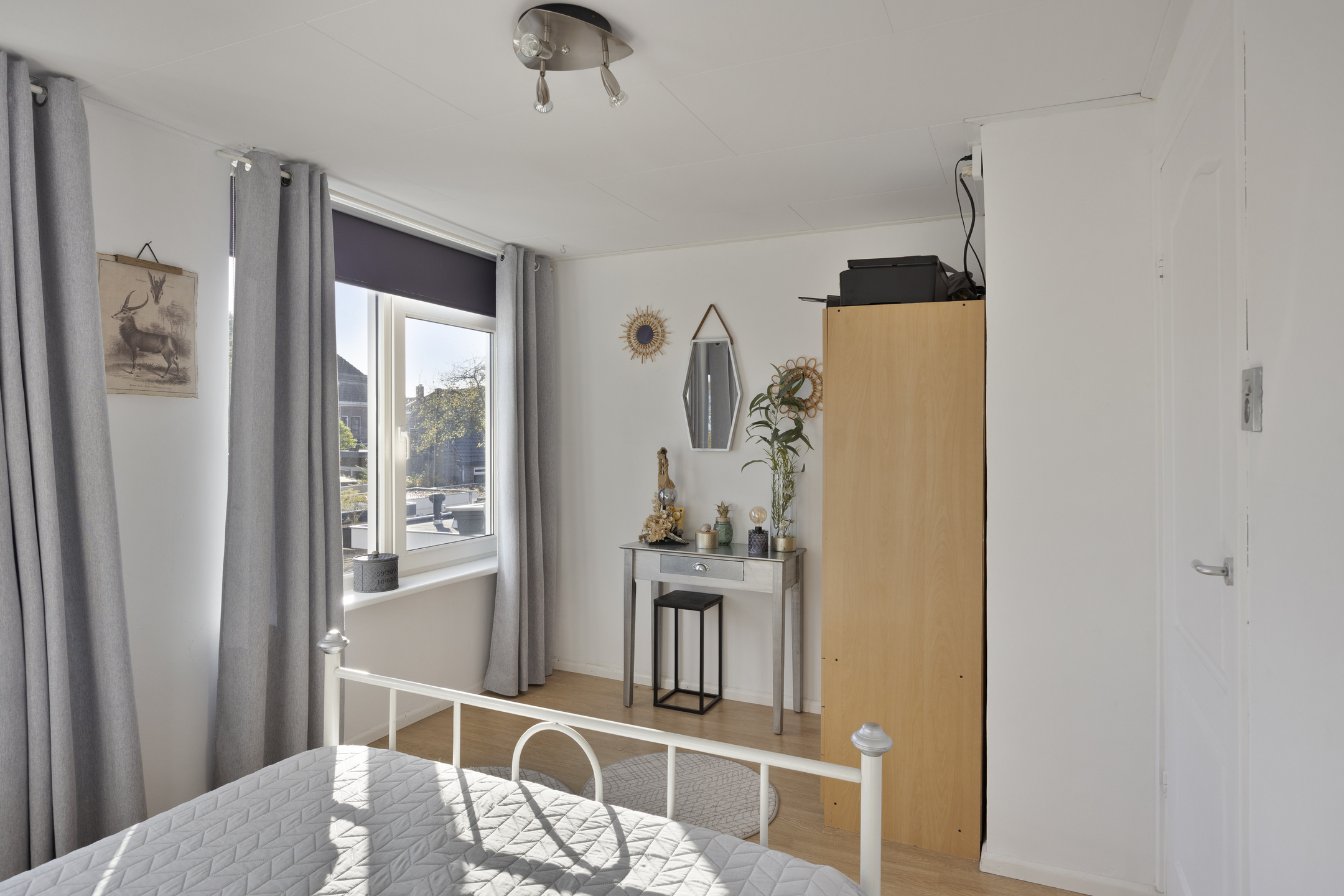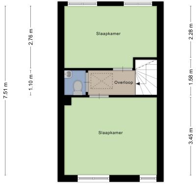 De overloop biedt toegang tot twee ruime slaapkamers, beide over de volle breedte van de woning. De slaapkamer aan de achterzijde heeft moderne draai-/kiepramen, en op de overloop bevindt zich een tweede toiletruimte met fonteintje.