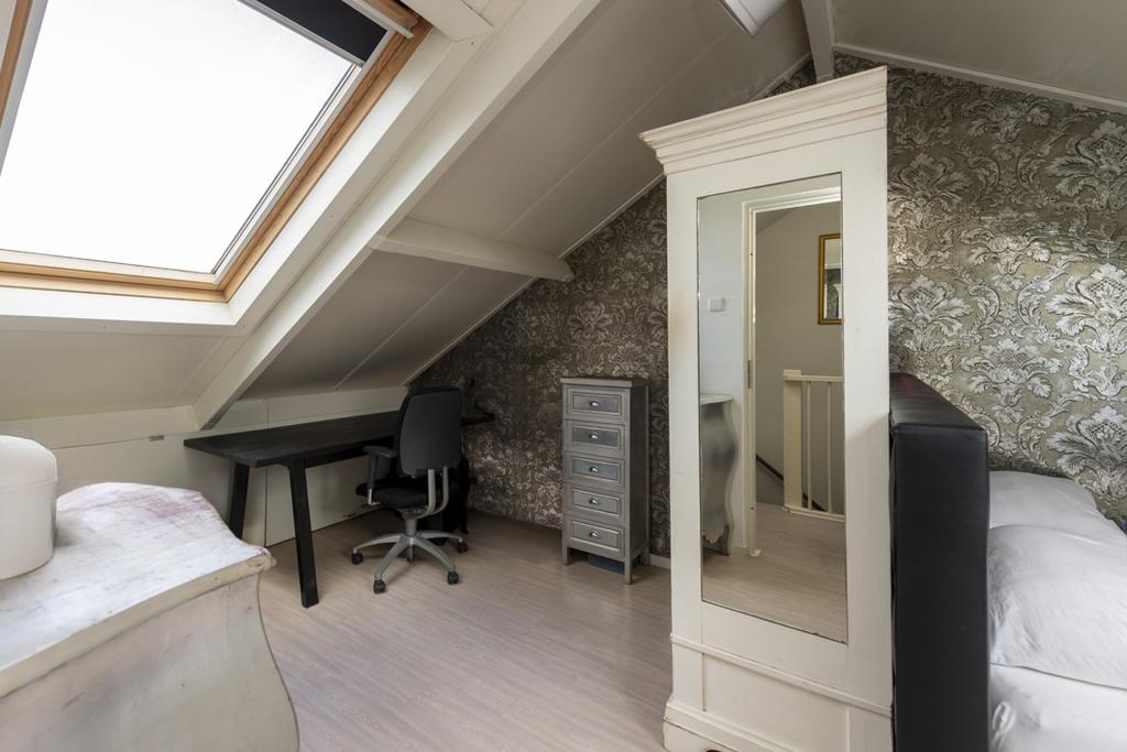 Voorzolder met klein Velux dakraam en aansluiting wasmachine en droger. Hier treft u ook de derde royale slaapkamer aan voorzien van twee grote Velux dakramen. Aan beide zijden van de zolder knieschotten aanwezig met daarachter voldoende opbergruimte.