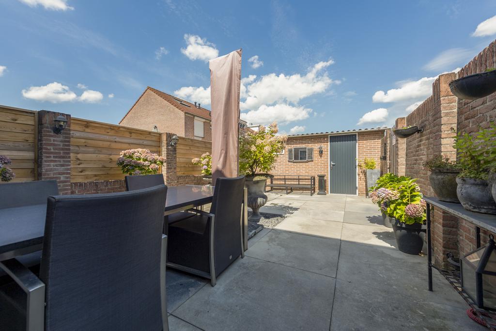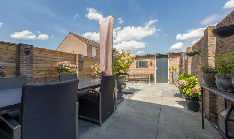 De achtertuin is gezellig ingericht en gelegen op het noorden. De tuin is voorzien van bestrating, eigen achterom en een stenen berging met elektra.