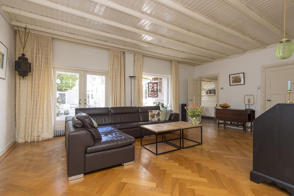Prachtige entree/hal met granieten vloer, gemarmerde wanden en bijzonder fraaie bordestrap. Riante woonkamer (ca. 50 m²) voorzien van prachtige visgraat parketvloer, openslaande tuindeuren en een aparte ruimte in de woonkamer welke in open verbinding staat met het zitgedeelte. Woonkeuken met keukenblok voorzien van inbouwapparatuur en aansluitend bijkeuken met toegang tot toilet, grote provisiekelder en was- annex cv ruimte met opstelling CV combiketel. Aansluitend (in de aanbouw) een kantoorruimte en vervolgens de multifunctionele ruimte met fraaie lichtinval en openslaande tuindeuren.