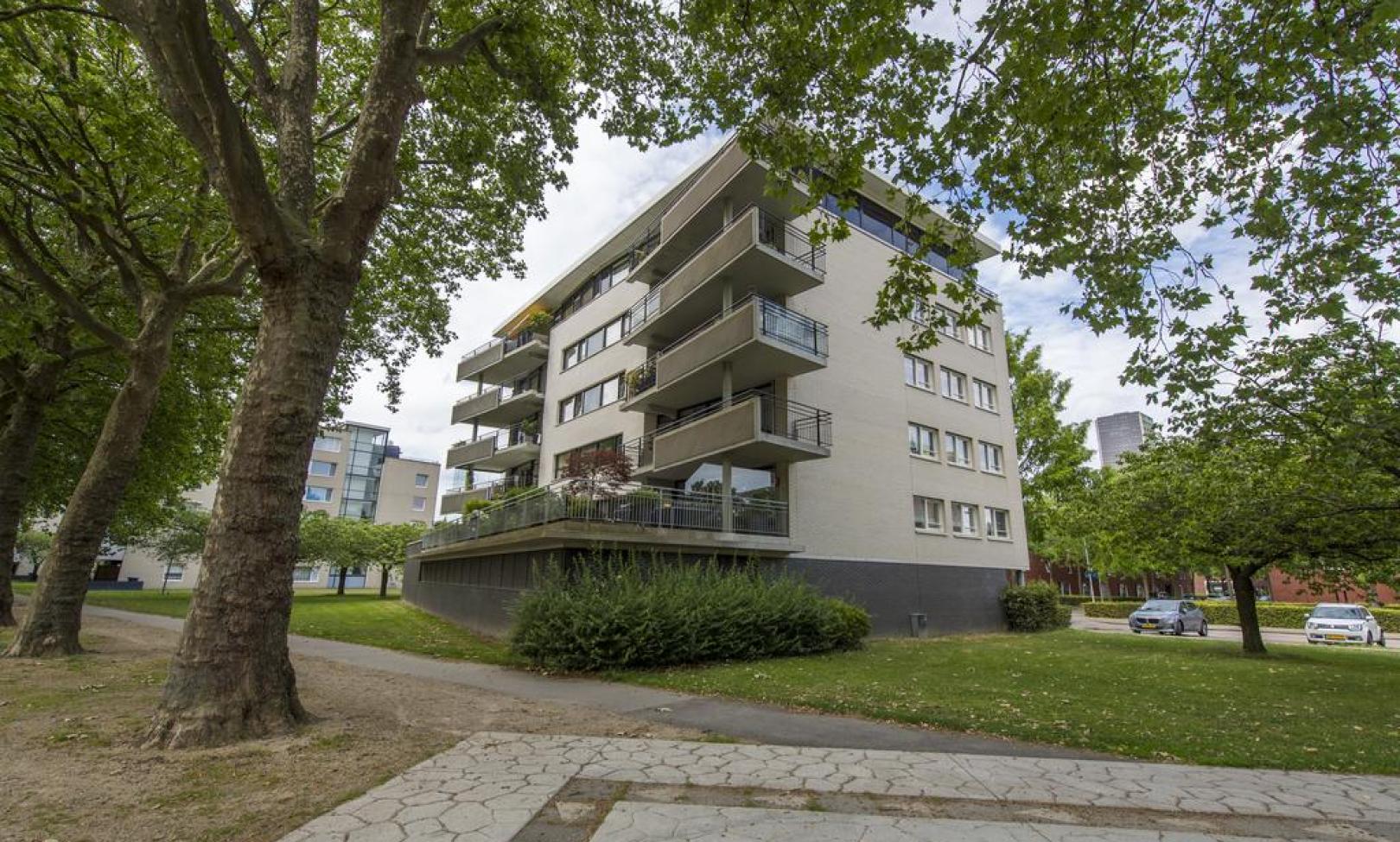 Op een prachtige plek aan het Kromhoutpark gelegen luxe en ruim hoekappartement met eigen parkeerruimte in onderliggende garage en een schitterend uitzicht over het Kromhoutpark. Het appartement, groot 131 m², is gelegen op de 1e verdieping en heeft een groot dakterras grenzend aan de woonkamer.