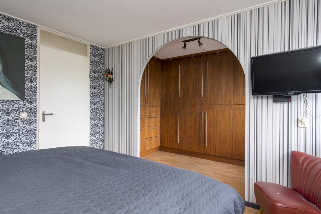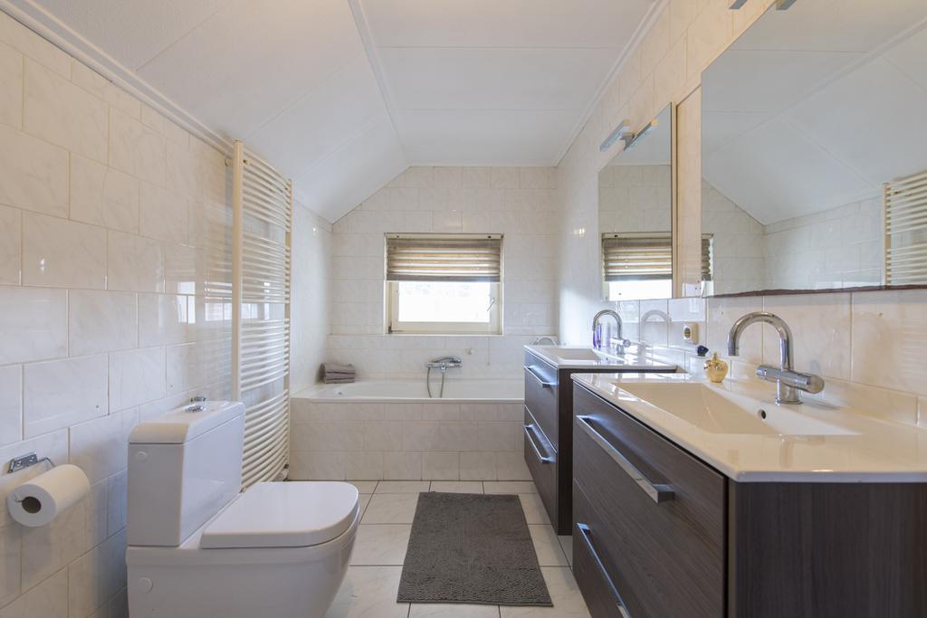 Overloop met vaste kastenwand en de trapopgang naar de 2e verdieping. Grote slaapkamer aan de achterzijde met een doorgang naar de kastenkamer (voorheen 2 slaapkamers) en een slaapkamer aan de voorzijde. Beide kamers zijn voorzien van een laminaatvloer. Royale badkamer met douche in cabine, ligbad, dubbele wastafel in meubel en toilet. Het geheel is in lichte kleuren uitgevoerd.