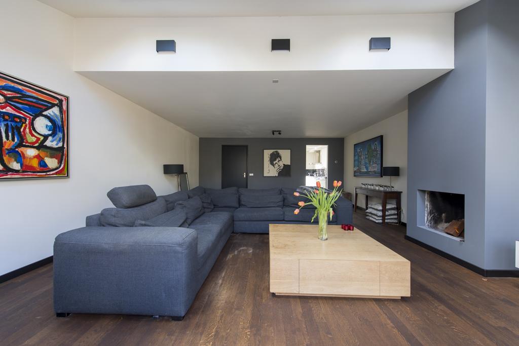 Entree in hal met de meterkast, de trapopgang naar de 1e verdieping en toiletruimte. Het toilet is voorzien van mozaïek wanden, een zwevend closet en fonteintje. De royale woonkamer met eiken houten vloer, centraal gelegen open haard en openslaande tuindeuren heeft veel lichtinval door de aanwezige dakvensters. Vanuit de woonkamer toegang tot de gezellig eetkamer en ook hier zijn openslaande tuindeuren aanwezig.