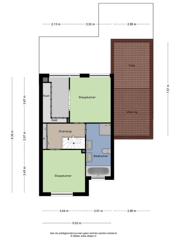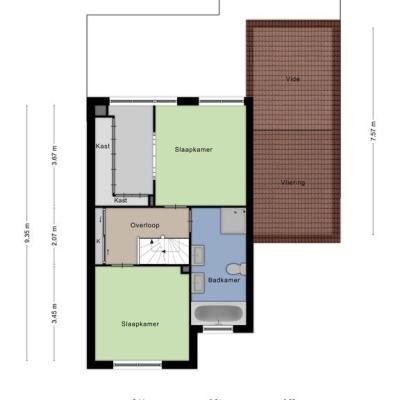 Voorzolder met toegang tot twee slaapkamers onder de schuine kap. Beide kamers zijn voorzien van een dakraam en één van de slaapkamers heeft een vaste kast.