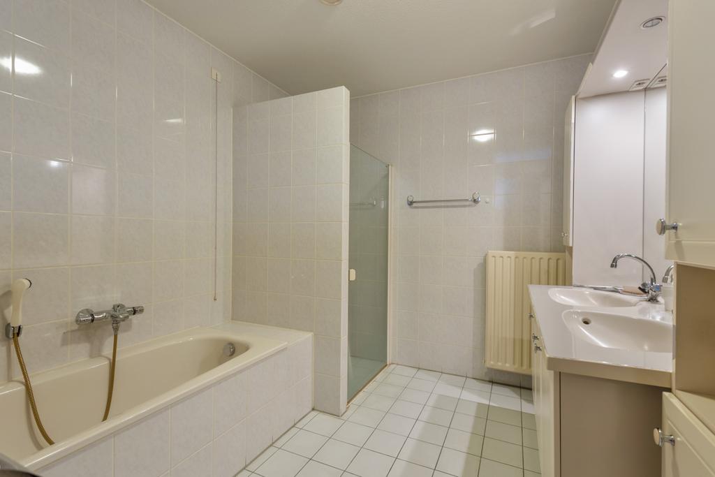 Toiletruimte met fontein, toegang tot de grote badkamer welke is ingericht met een ligbad, douche, vrijhangend toilet en dubbele wastafelmeubel. De twee slaapkamers bevinden zich aan de voorzijde en hebben vrij zicht.