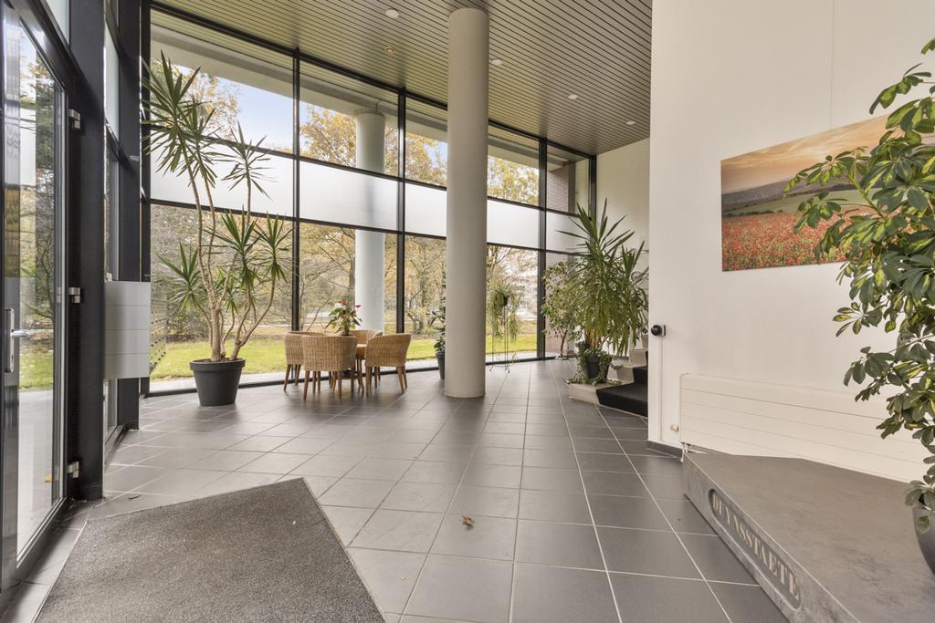 Vanuit de ontvangsthal is er toegang tot de liften, trappenhuis, parkeergarage, algemene fietsenstalling en de bergingen.