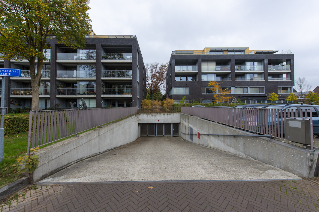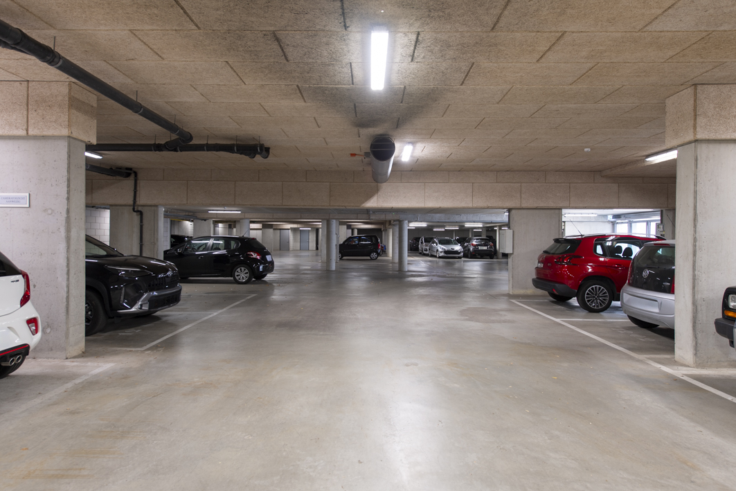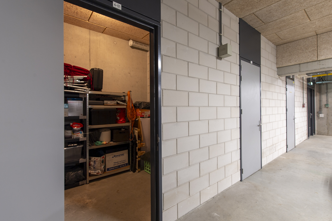 In de kelder is een afgesloten parkeergarage gesitueerd, alwaar een separaat gedeelte is bedoeld voor de bewoners van het betreffende complex met voor ieder een vaste parkeerplaats en in dit geval ook een berging.
