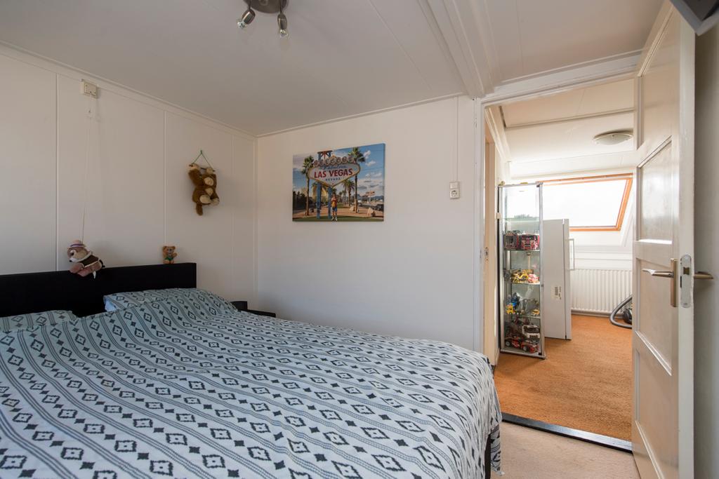 Via een vaste trap komt u op een ruime overloop met een luik naar de bergzolder. De overloop kan gesplitst worden zodat er nog een extra werk-/slaapkamer ontstaat. Vanuit de overloop toegang tot twee slaapkamers. De eerste slaapkamer is een ruime slaapkamer aan de voorzijde met dakkapel en strakke afwerking. De tweede is aan de achterzijde van de woning gelegen en heeft een dakraam.