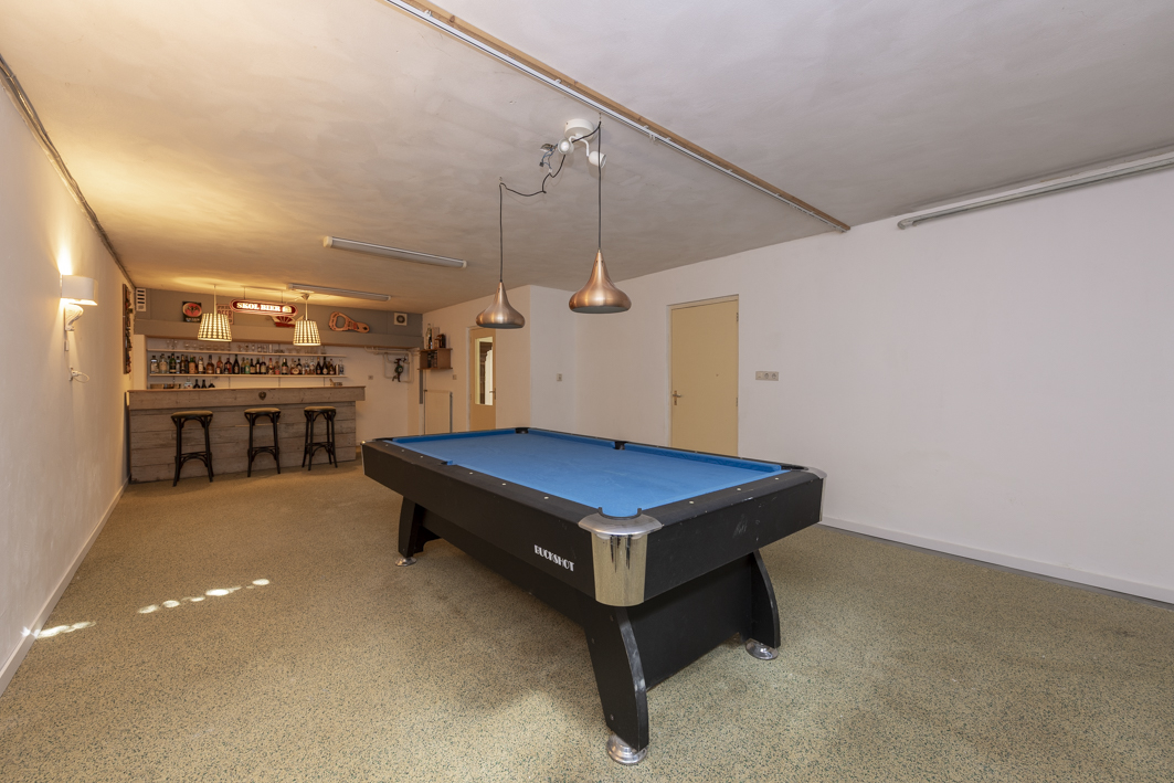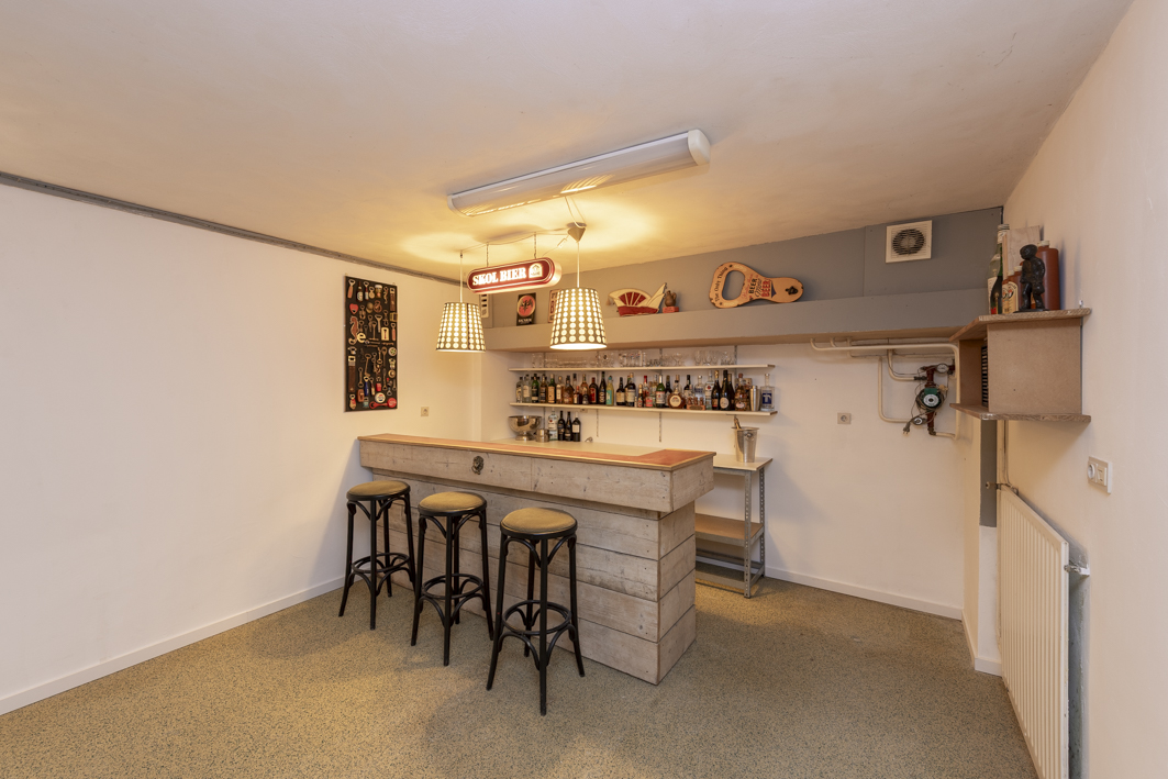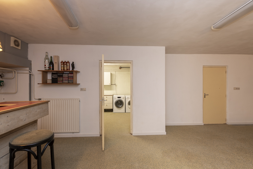 Dit souterrain is verdeeld in vier ruimtes, waaronder een hobby-of chillruimte met bar, bijkeuken met aansluitingen wasmachine/droger en berging met de unit vloerverwarming.
