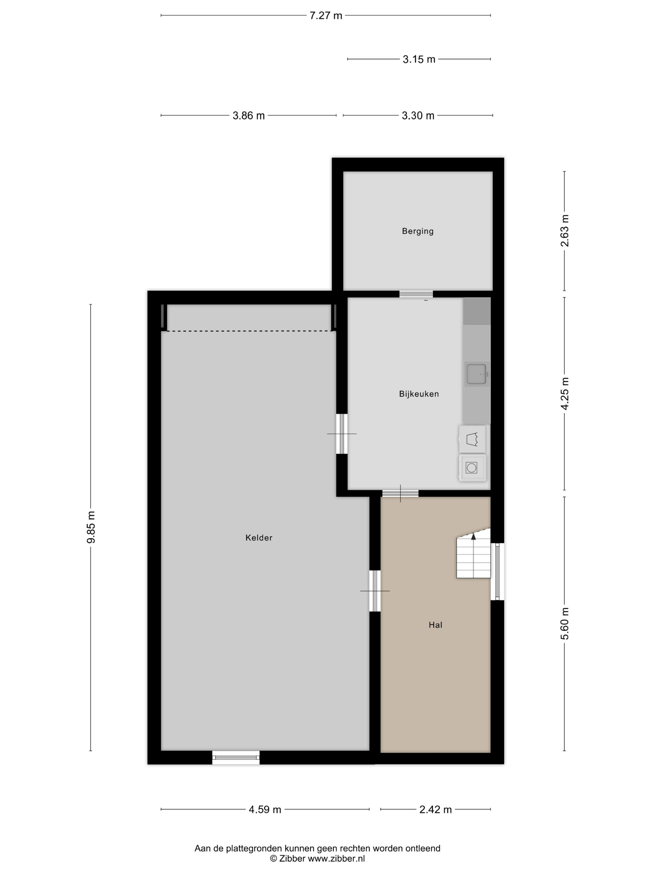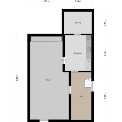 Souterrain (kelder met stahoogte ca. 2.50 m)