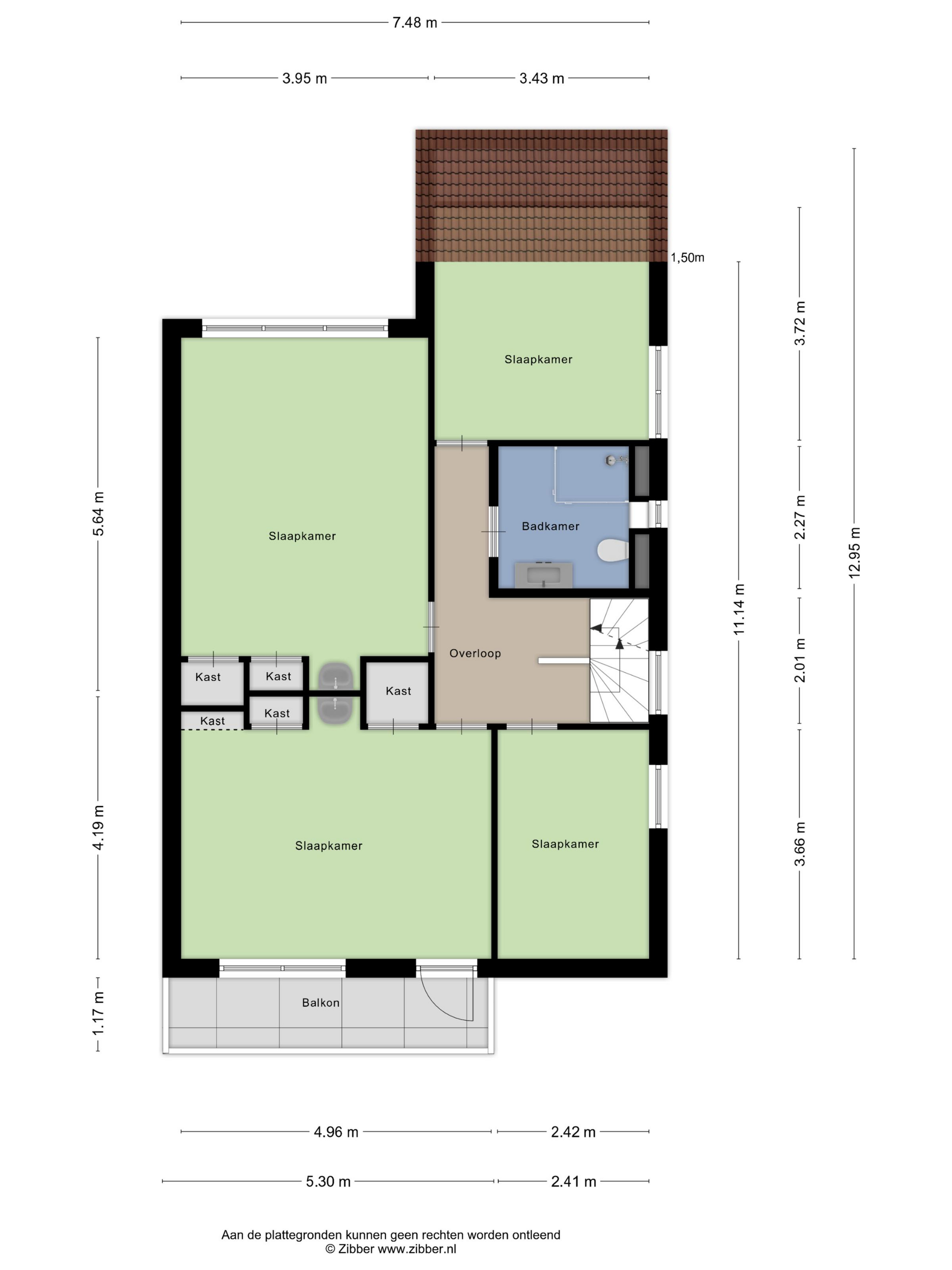 De verdiepingen van de woning mogen we gerust heel ruim noemen. Bereikbaar via vaste trappen.