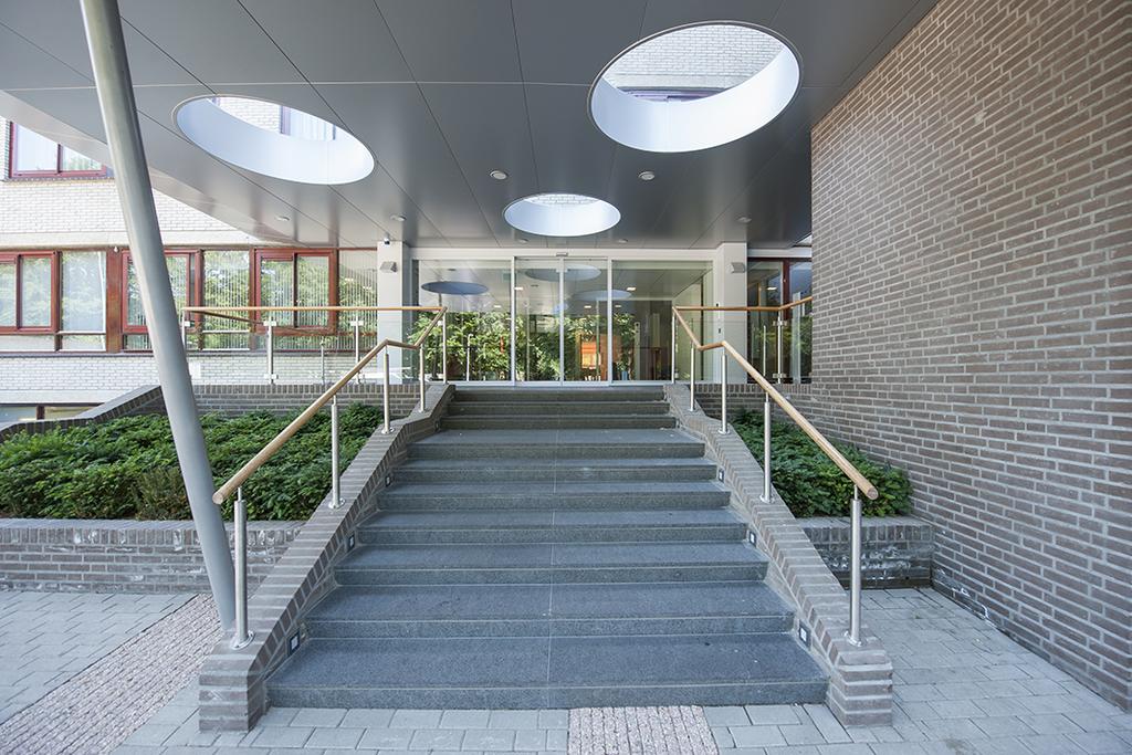 Gemeenschappelijke entree met brievenbussen, intercom, trapopgang en lift naar de etages.