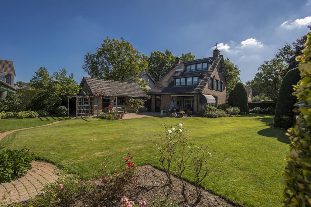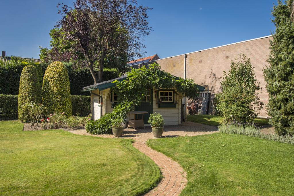Voortuin met eigen oprit voor meerdere auto’s. Vanuit de oprit toegang tot de garage. Schitterende tuin achter en naast de woning met groot gazon, plantenborders en een houten tuinhuis. Het tuinhuis is voorzien van een keukenblokje met elektra, tv-aansluiting en water. Achter het tuinhuis is een kleine berging geplaatst.